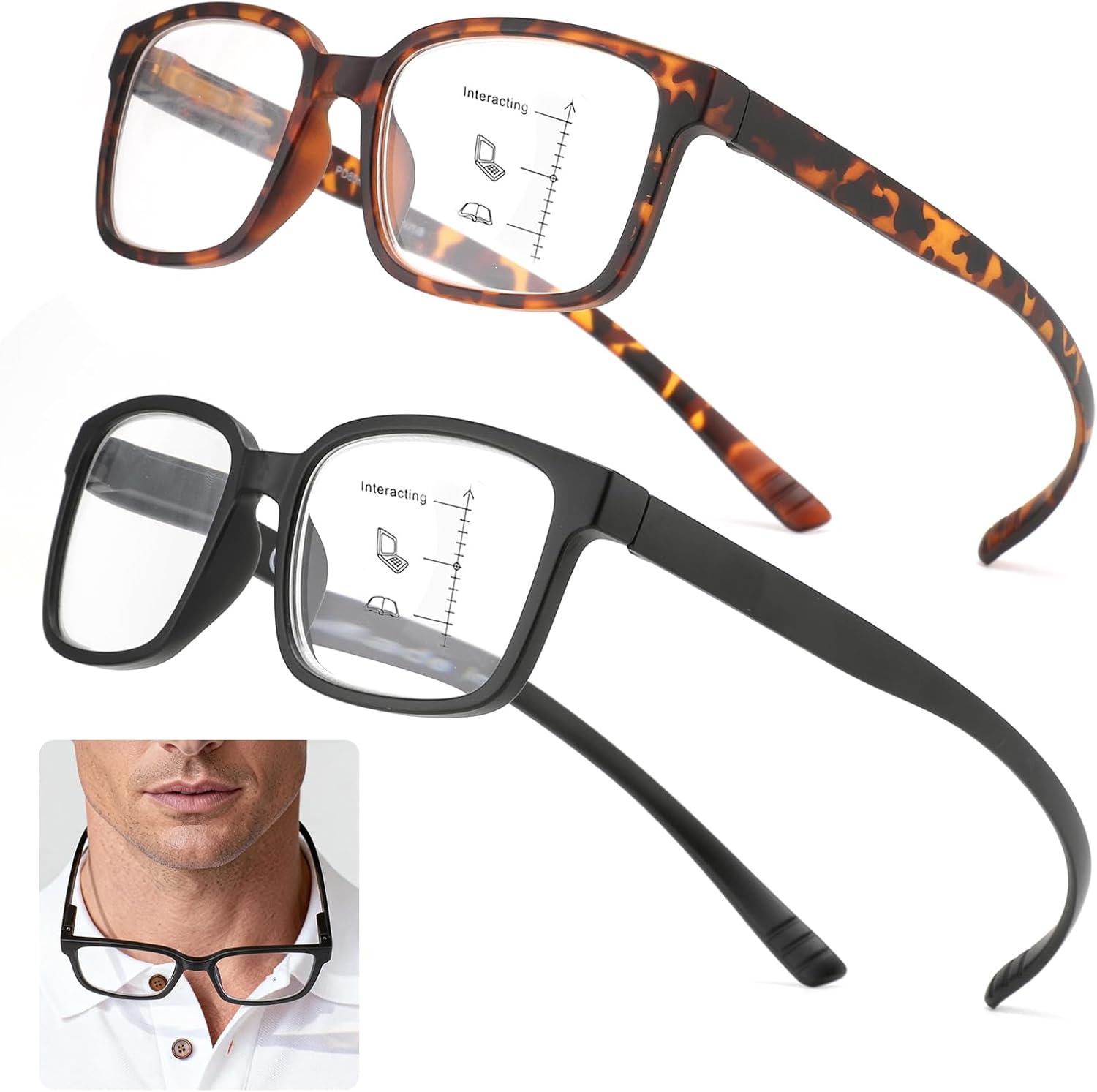 CARA 2 Pack Neck Hanging Progressive Reading Glasses for Women Men Multifocus Blue Light Blocking Computer Readers