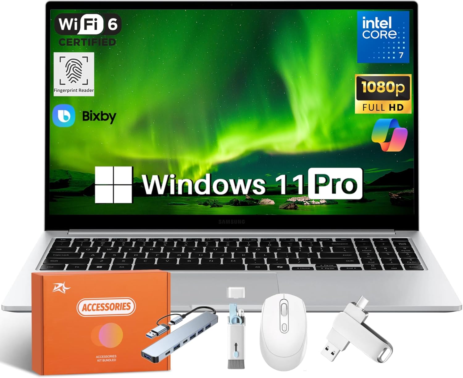 Samsung Galaxy Book4 Business Laptop, Intel 7 150U(Up to 5.4 Ghz), 15.6 Inch FHD Anti-Glare Display, 16 GB RAM, 4 TB SSD, Fingerprint Reader, WiFi 6, Type-C, Windows 11 Pro, Dolby Atmos, Accessories