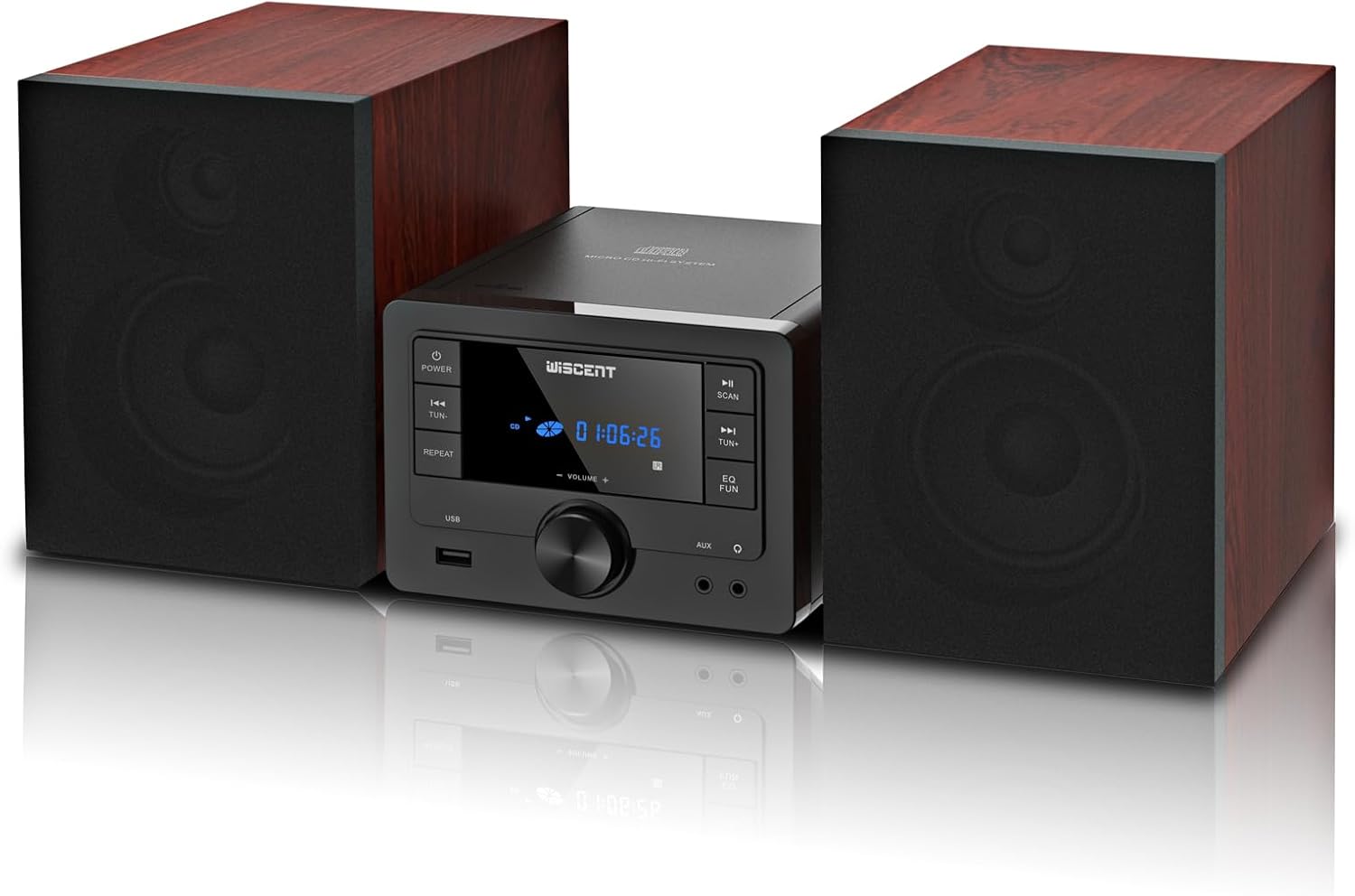 WISCENT Bluetooth Stereo System 40W for Home, CD Player with Wireless Streaming, MP3/USB/Audio in/FM Radio, Powerful Home Audio Sound System