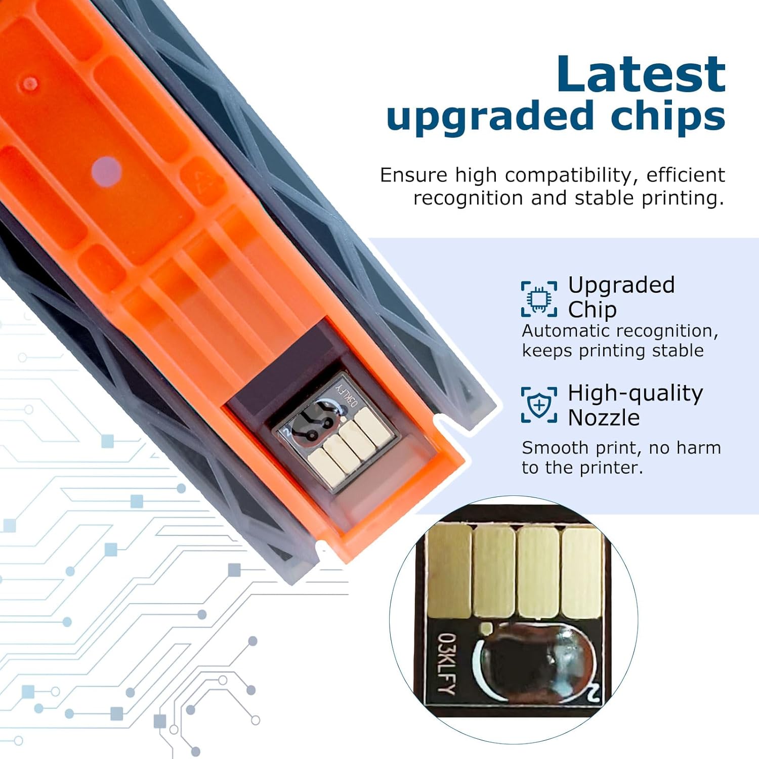 Note: Please do not touch and remove the chip. Please do not touch the ink nozzles.
