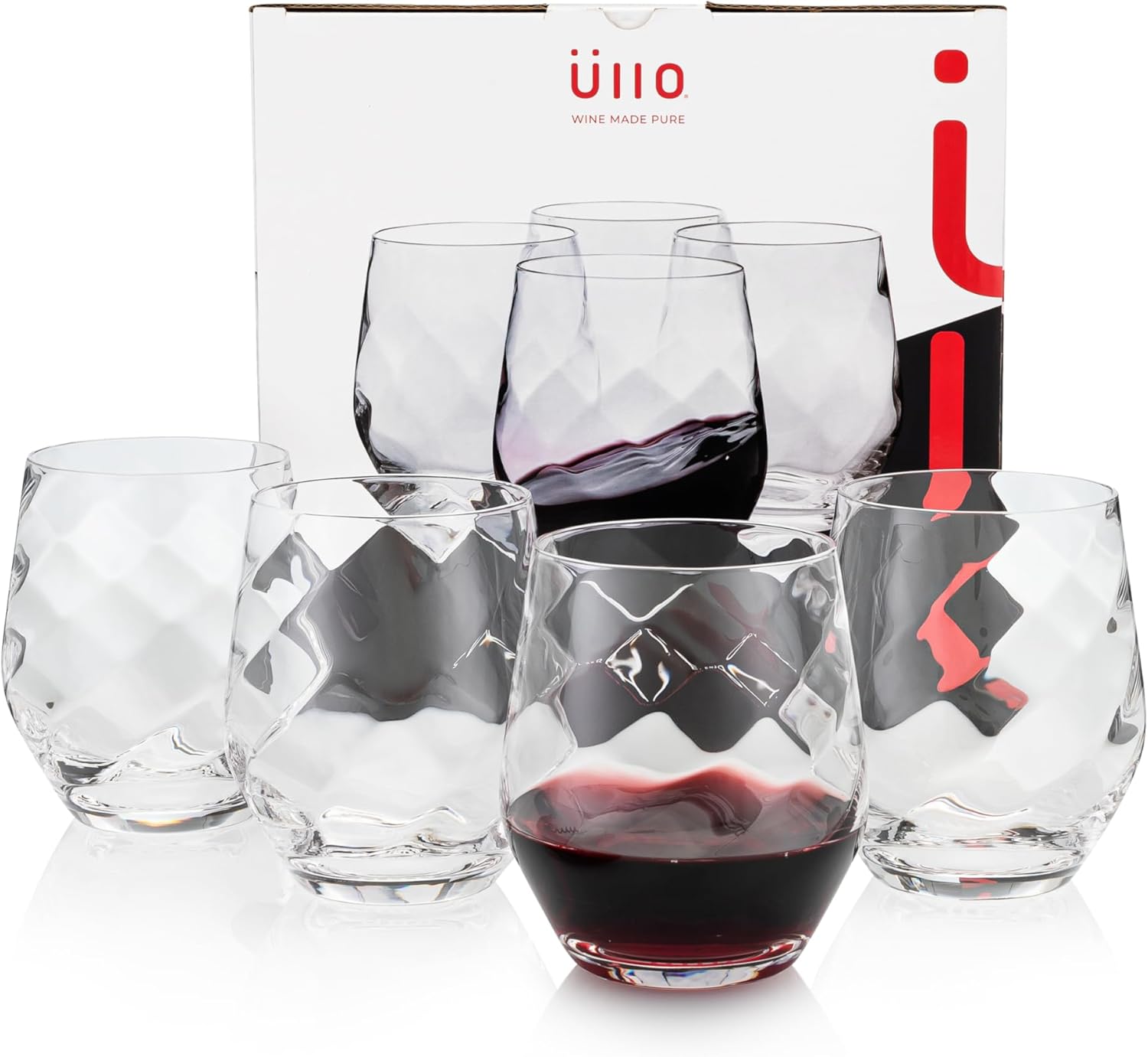 Üllo Aer Crystal Stemless Wine Glasses with Aerating Swirl Design for Enhanced Flavor, Clear, Set of 4