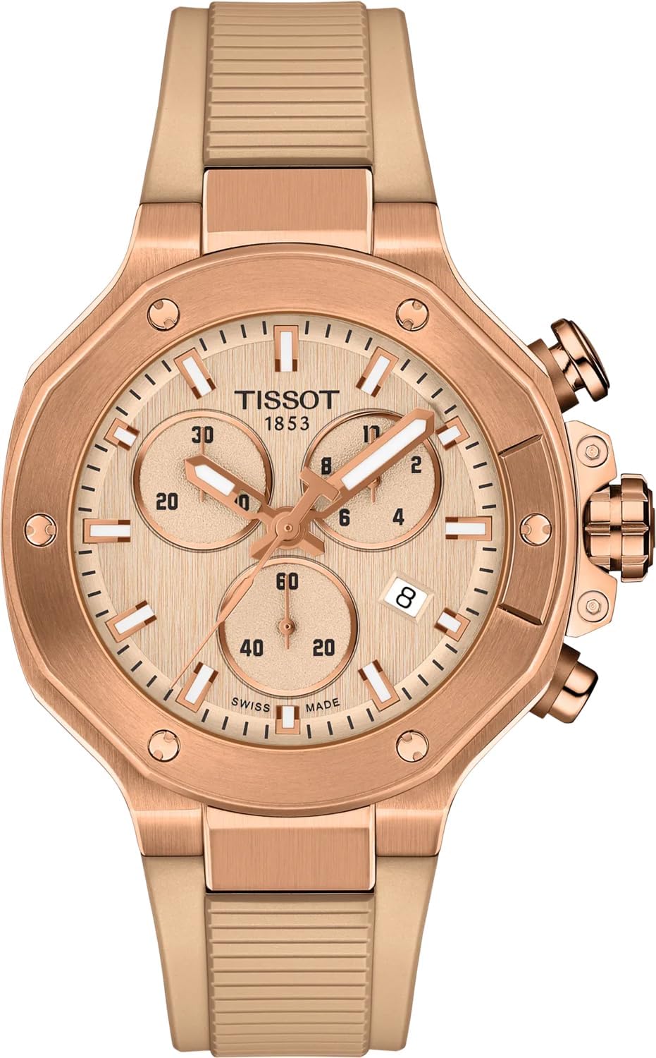 Tissot T-Race Chronograph 38mm, Swiss Quartz Watch, Stainless Steel Case with PVD Coating, Beige Dial, T1418173750100