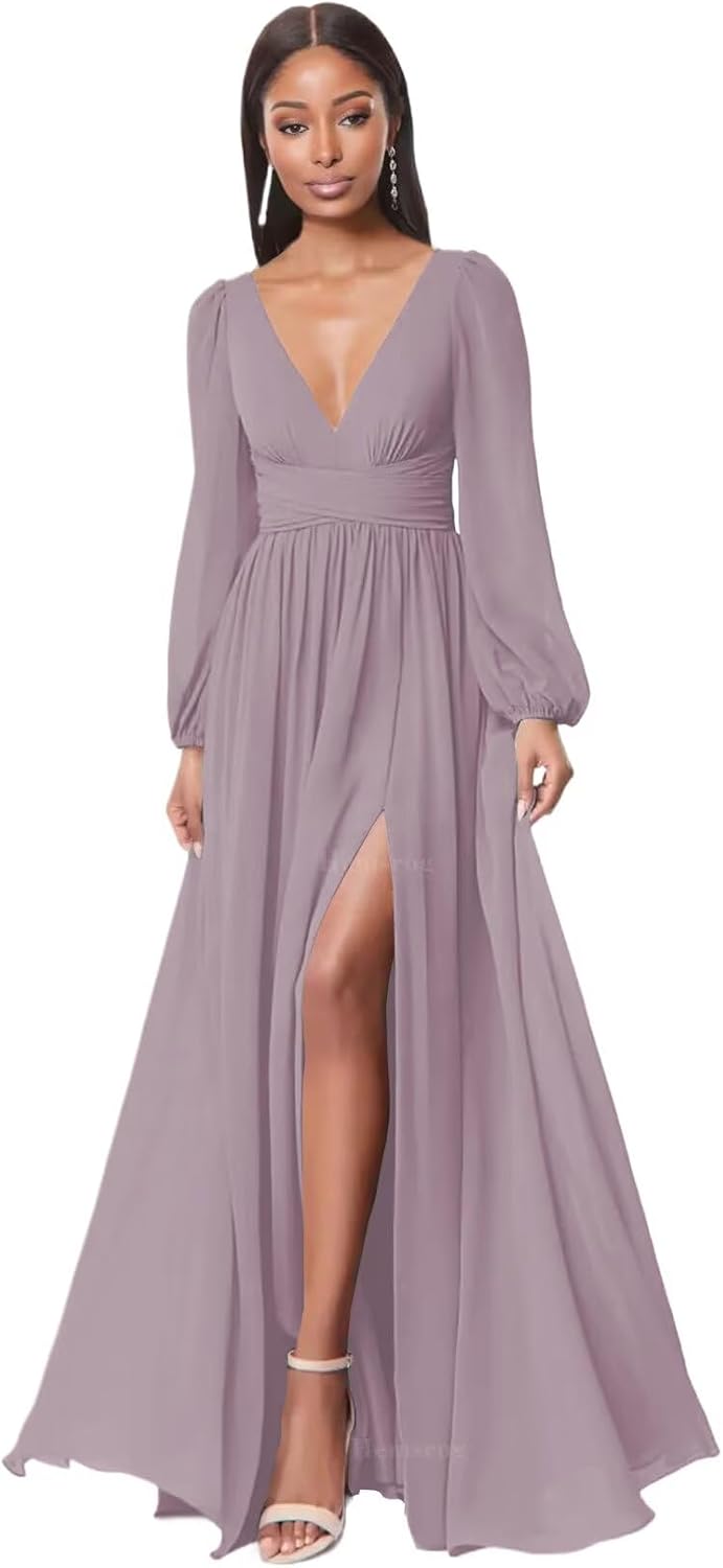 Welcome to Hemsrog! Description:Long Sleeve Bridesmaid Dresses for Women Pleated Chiffon Prom Dresses for Teens V Neck Long Wedding Guest Dresses Fall A-Line Flowy Formal Dresses for Wedding Guest Ruched Cocktail Dresses for Women Elegant Classy Side Slit Wedding Dresses for Bride 2026 Corset Maxi Formal Evening Party Gownsbr>Material:Chiffon Bridesmaid DressDress Length: Floor LengthClosure type: ZipperNeckline:V NeckSleeve Style:Long SleeveOccasions:The Lantern Sleeve Bridesmaid/Prom Dress Are Perfect for Prom,Wedding, Cocktail,Holiday,Bridesmaid,Party,Formal Evening,Graduation, Gala, Valentine's Day,Pageant, Women's Day,Reception, Engagement, Red Carpet, Ceremony, Photoshoot, Maternity Dress.Pregnancy Robe,Special Occasion,Other Formal or Semi-Formal Occasions.All Sizes Are Availabe. If You Would Like to Customize, Please Send Us The Following Measurements and Requirements after Placing Your Order.1.Full Bust _____ inch or ___ cm2.Waist _____ inch or ___ cm3.Hips _____ inch or ___ cm4.Hollow to floor(Shoulder to Feet without heels on) ___ inch or ___ cm5.Height: _____inch or ___ cmI.If You Have Any Other Requirements, Please Send Them to Us.Dress Care:Hand Wash in Cold Water Is Recommended. Dry Clean Is Also Available. Avoid Long Time Exposure to Sunlight.Return Policy:1.Please Contact Our Customer Service for The First Time and Tell Them Your Requests.2.Return for Refund Is Available(Please Keep Original Dress When You Return It).Other Notes1. The real color of the item may be slightly different from the pictures shown on website due to monitor settings.2. Please allow slight deviation for the measurement data. Any more questions, please do not hesitate to contact us. We are always at your service.Thank you for your patronage!