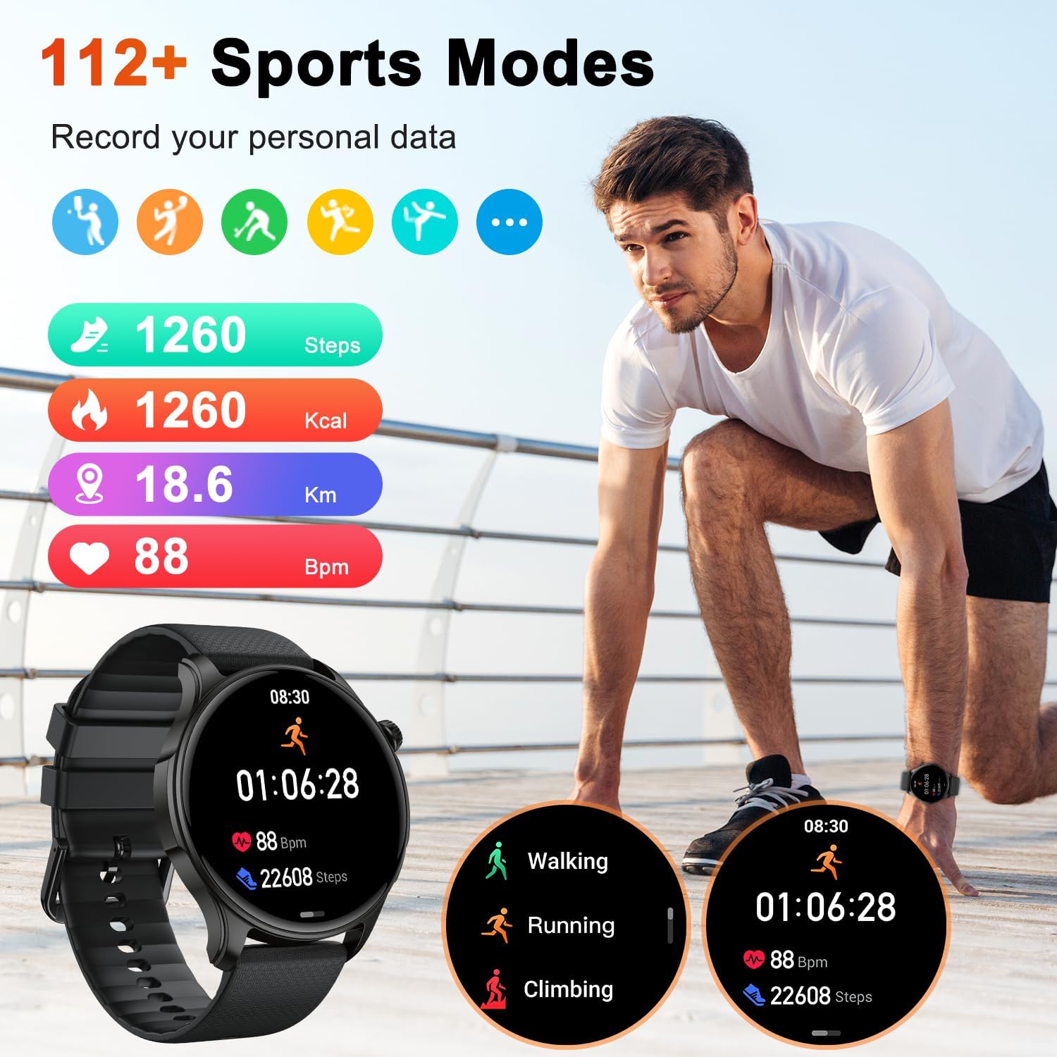 1.43'' AMOLED Screen & 200 Watch Faces: The ios android smart watch is equipped with an ultra-clear AMOLED color touch screen with a resolution of 466*466, allowing you to view information and data more clearly and easily.ios android watch for men come with 2 watch straps of different colors. With over 200 dials in various styles to choose from, you can also upload photos of family, pets, or scenery to create a personalized watch face that reflects your unique style.