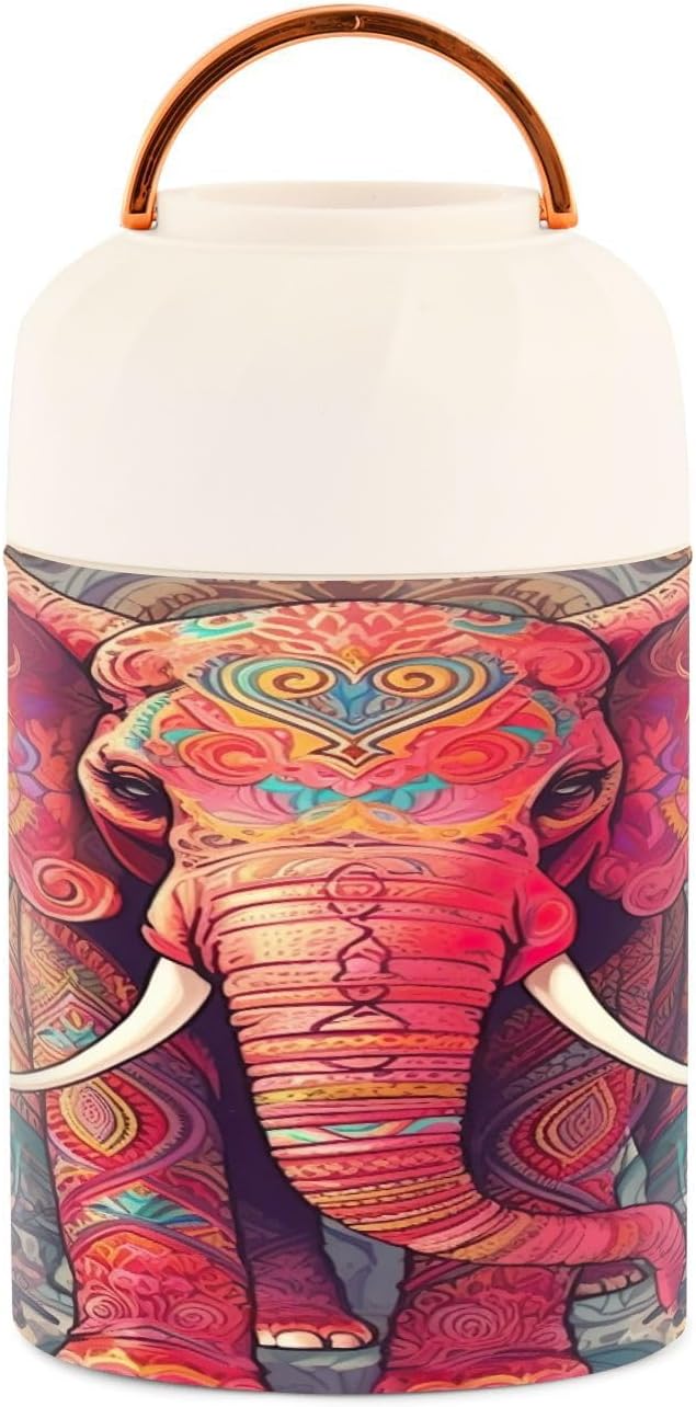 Ethnic Elephant Insulated Food Jar Vacuum Stainless Steel for Hot & Cold Lunch Containers for Adults with Spoon, 17 oz
