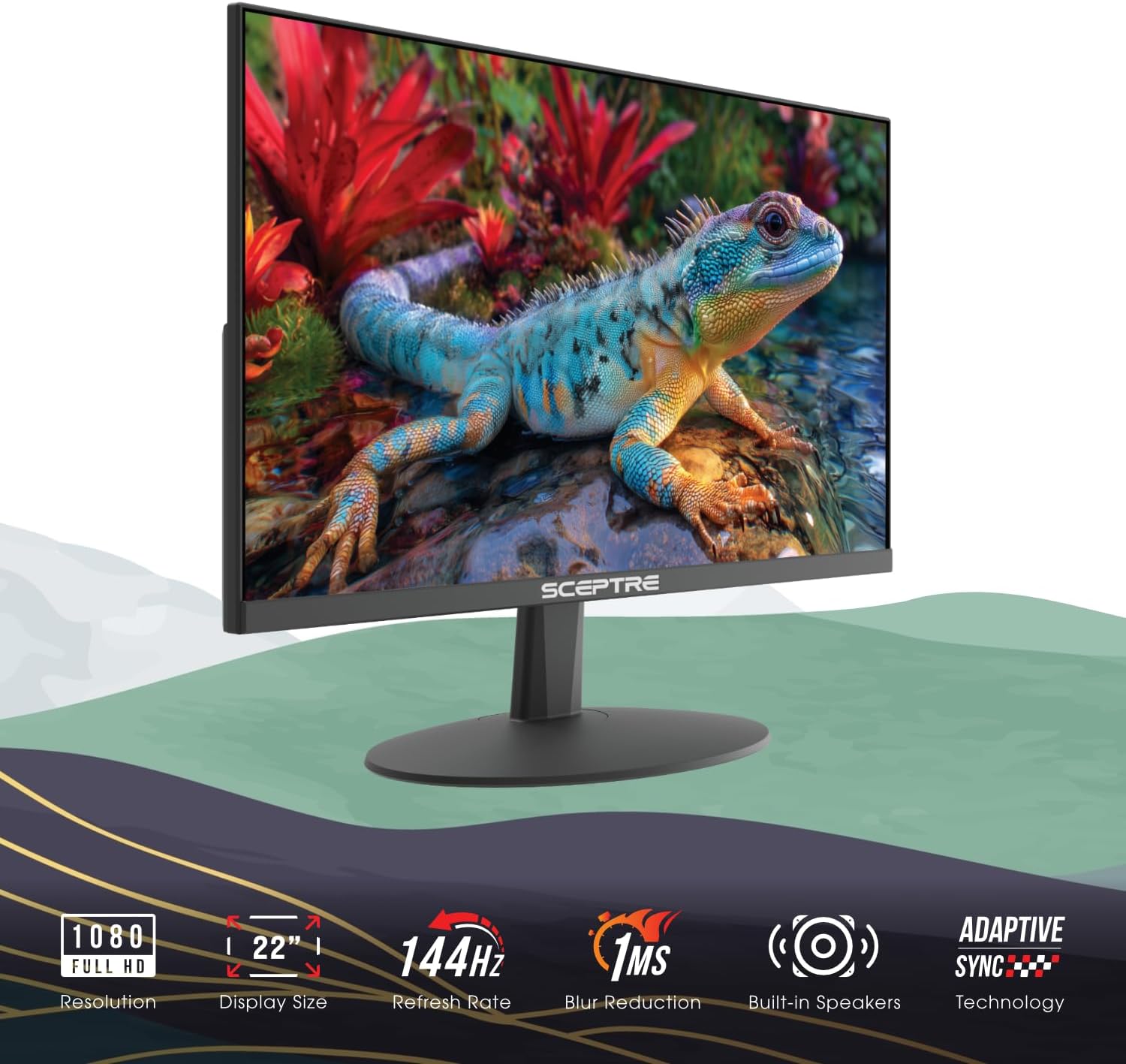 Sceptre New 22-inch Prime Monitor up to 144Hz HDMI DisplayPort Build-in Speakers, Machine Black 2026 (FW144 Series)