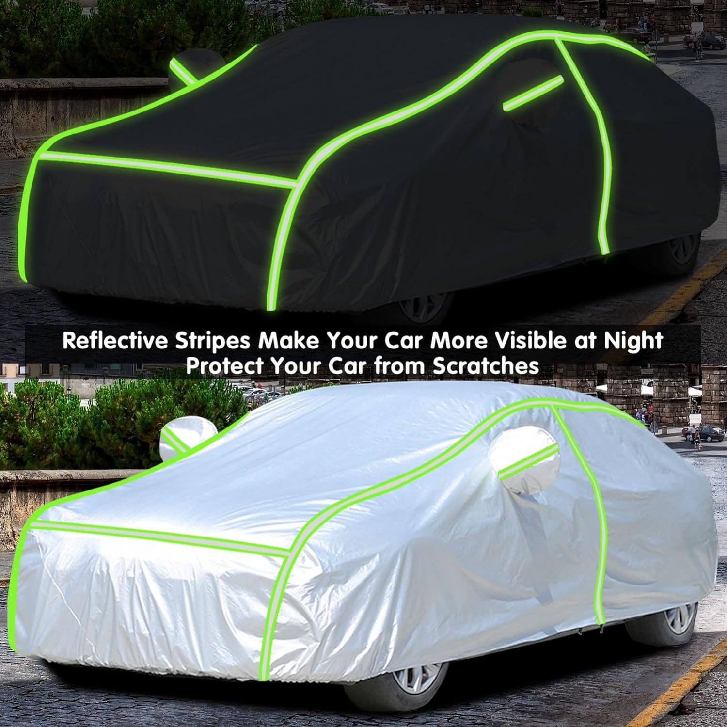 All Weather Protection You Can Rely On:Our car cover offers reliable protection.Waterproof to keep rain out,UV-resistant,windproof with a snug fit,dustproof and durable for long-term use,safeguarding your car in any weather