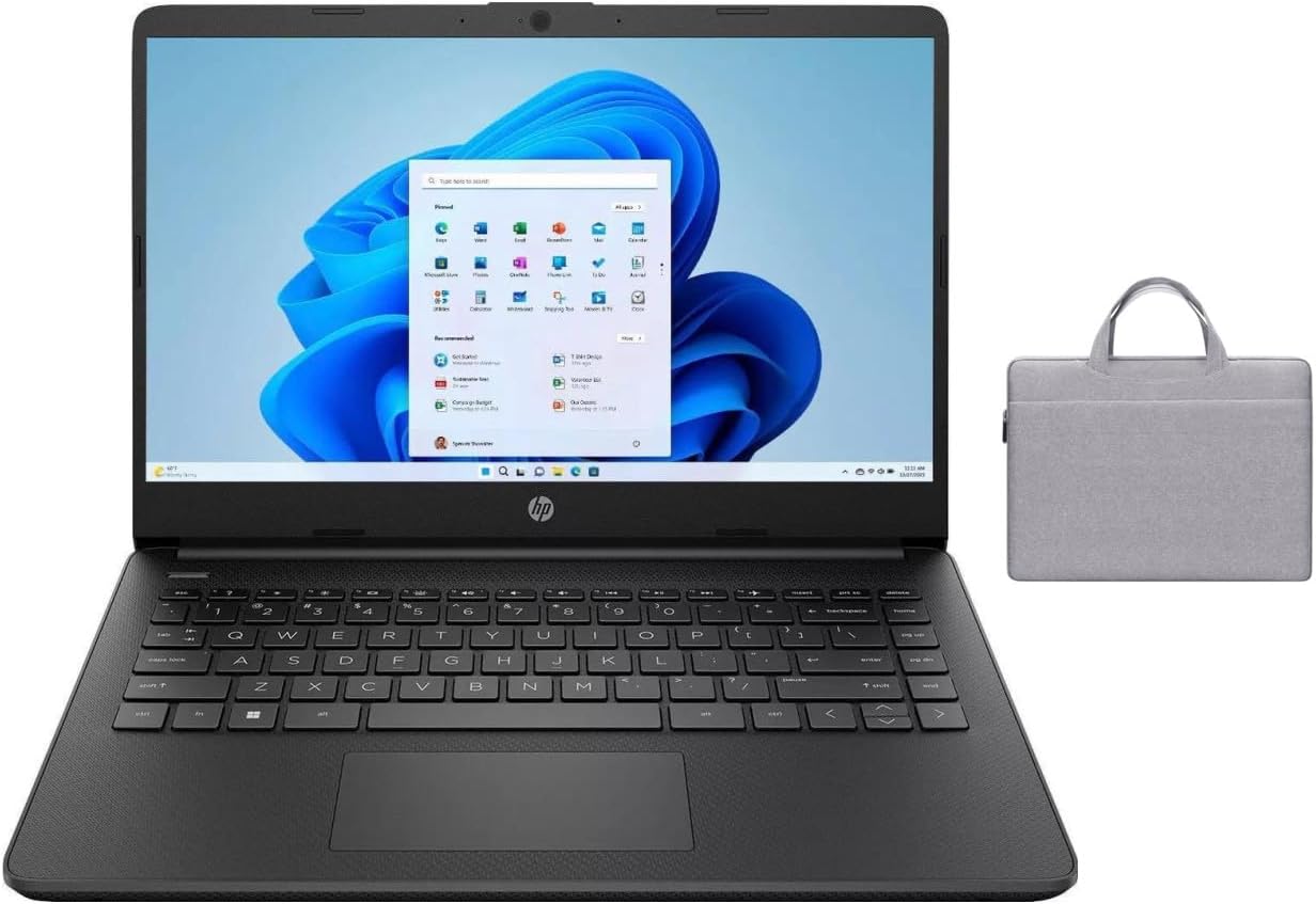 HP 14" HD Laptop | Quad-core Intel Celeron N4120 Processor | Intel UHD Graphics| One Year Office 365 | Jet Black | 4GB RAM | 128GB SSD | Windows 11 S | Bundle with Grey Bag
