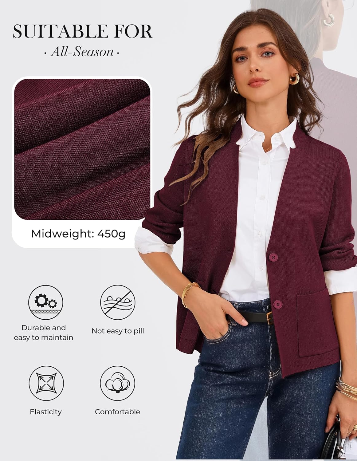 GRACE KARIN Women Sweater Blazer Business Casual Knit Cardigan 2025 Long Sleeve Suit Jackets Work Blazers with Pockets