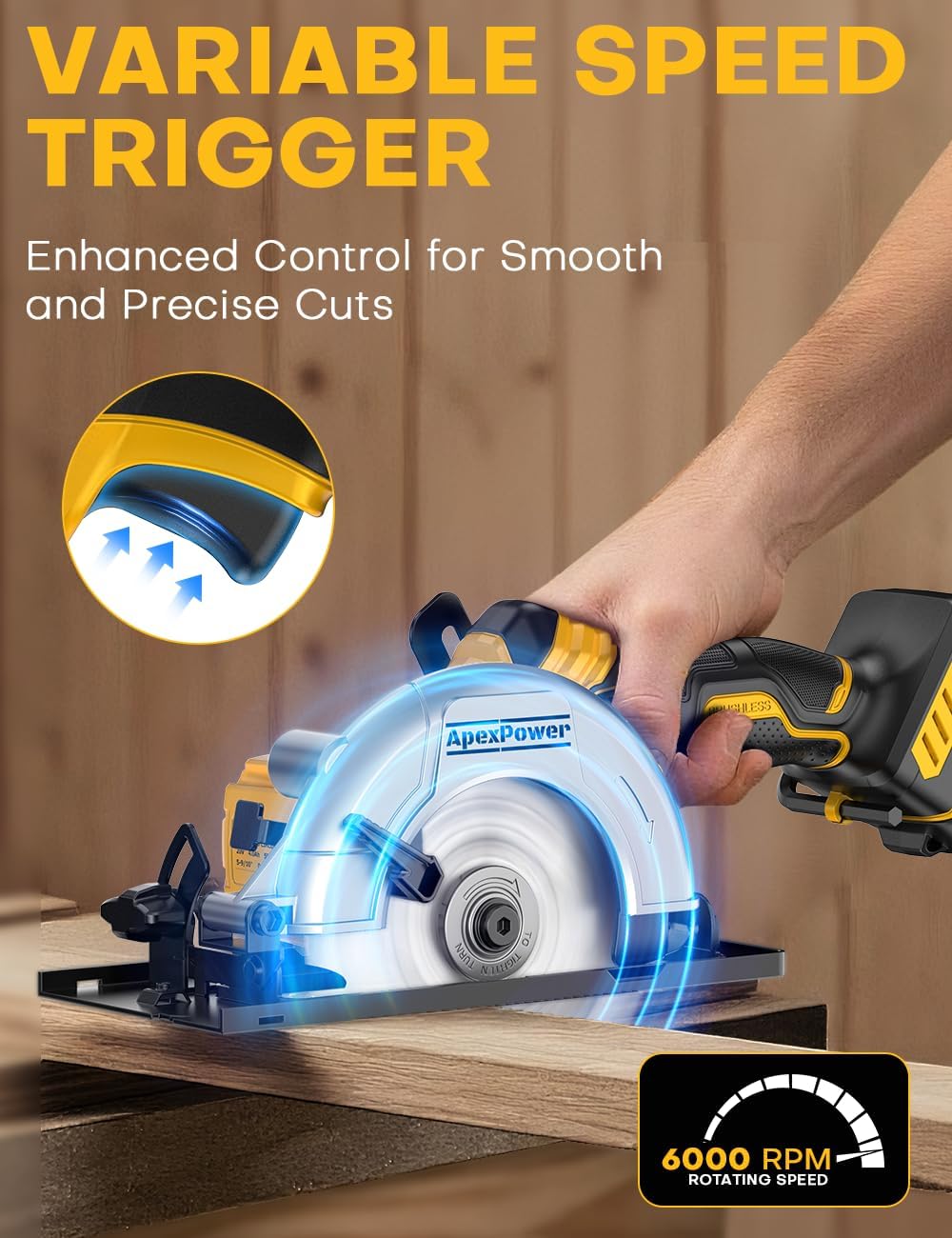 【𝐖orks with 𝐃𝐄𝐖𝐀𝐋𝐓 𝐁atteries】ApexPower’s battery powered circular saw is designed to work seamlessly with DEWALT 20V 4.0Ah or higher batteries(Battery and charger not included!), including (but not limited to) DCB204, DCB240, DCB205, and DCB206. Save money by purchasing the tool alone and use your existing DEWALT batteries. Perfect for DEWALT tool owners who don't need extra batteries.
