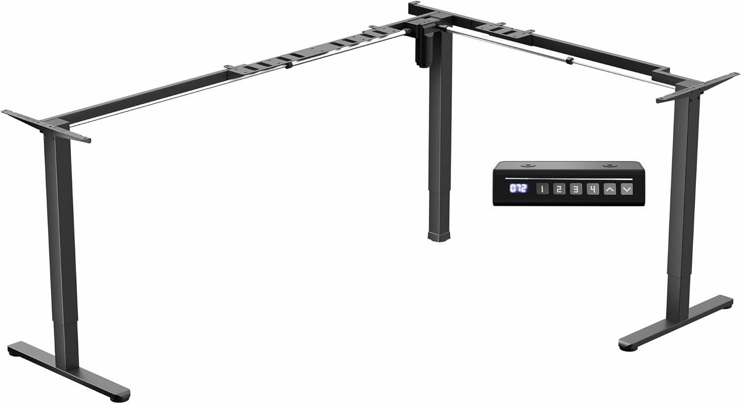VIVO Extra Large Electric Single Motor Height Adjustable 3-Leg Corner Standing Desk Frame, Holds up to 225 lbs, Sit Stand L-Shaped Motorized Legs Only, Black, DESK-E384B