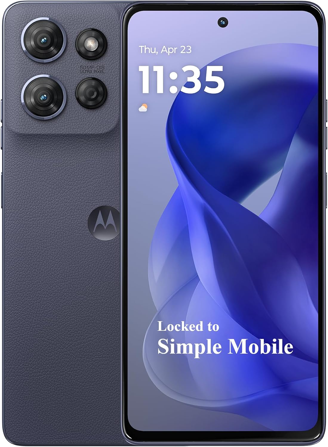 Experience the perfect blend of power, performance, and affordability with the Simple Mobile Motorola moto g POWER 2025. This prepaid smartphone is designed to keep up with your fast-paced life, offering a stunning 6.7-inch Full HD+ display with a buttery-smooth 120Hz refresh rate that makes everything from browsing the web to gaming an absolute joy. Unleash your inner photographer with the versatile 50MP Quad Pixel camera system. Capture breathtaking photos with incredible clarity and color, even in challenging lighting. The ultra-wide-angle lens lets you fit more into your frame, while the 16MP selfie camera ensures you always look your best. Worried about your phone dying in the middle of the day? The moto g POWER 2025 boasts an incredible 5000mAh battery that can last for days on a single charge. And when you do need a boost, the 30W TurboPower™ charging technology gets you back in the action in no time. Store all your important files, photos, and apps with ease thanks to the generous 128GB of internal storage, expandable up to 1TB. The powerful MediaTek Dimensity 6300 processor and 5G connectivity provide the speed and responsiveness you need for a seamless mobile experience. This device is locked to Simple Mobile, offering you access to nationwide 5G coverage on a flexible and affordable prepaid plan. Activation is simple and can be done online in minutes. Get your Simple Mobile Motorola moto g POWER 2025 today and enjoy a premium smartphone experience without the premium price tag.