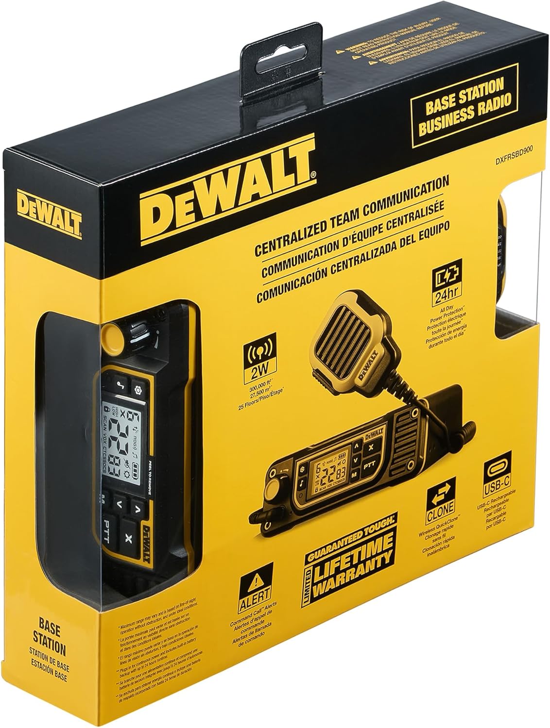 DEWALT FRS Base Station Business Radio, Pro-Grade Long Range 2 Way Radio, 2 Watt, Remote Speaker Mic, Battery Backup, DXFRSBD900