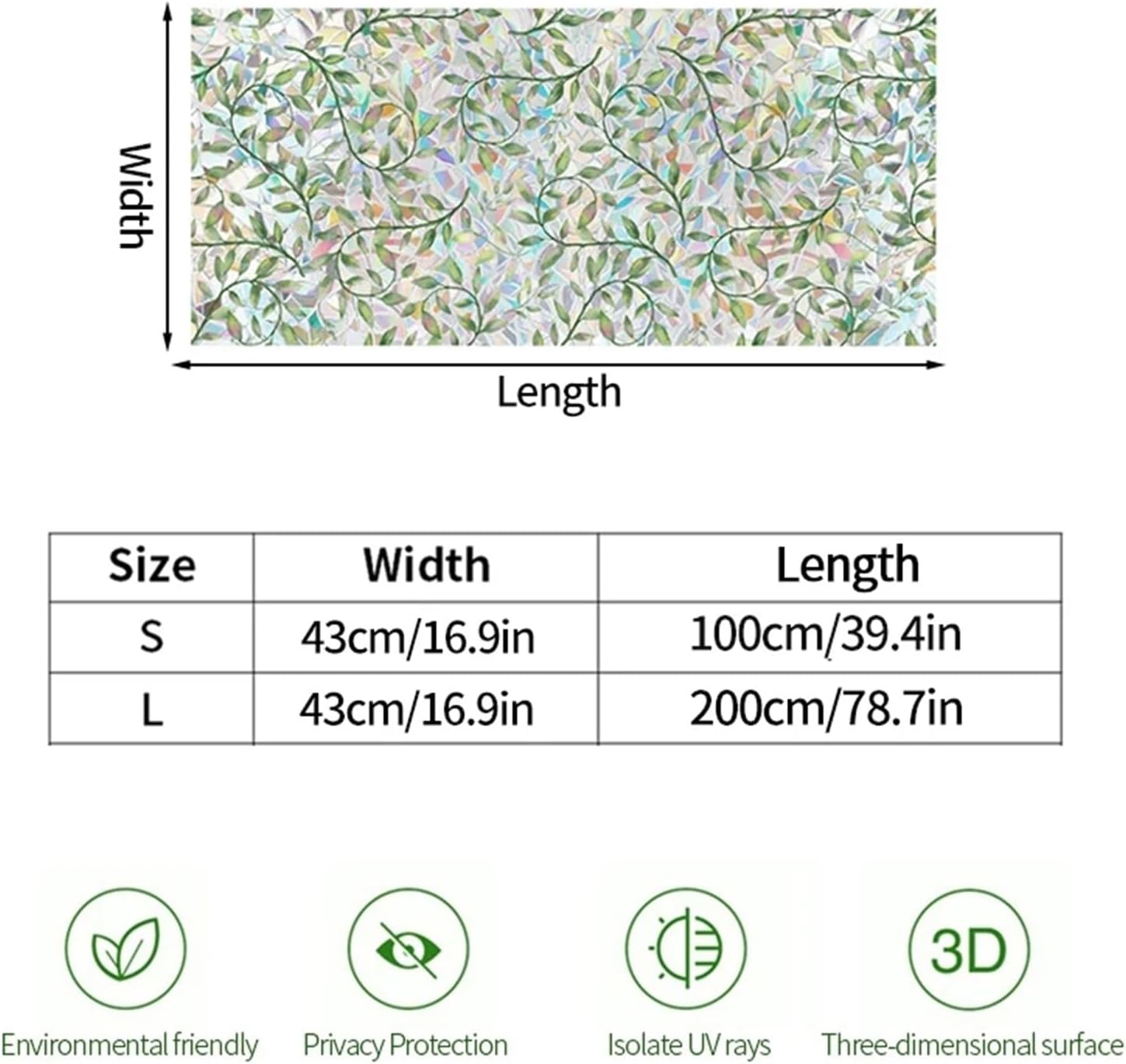 Removable Window Film: Experience the convenience of removable window film, allowing you to change your space's look without any permanent commitmentExquisite beauty: Our window films are uniquely designed to give a stunning effect in the sunlight, giving your windows a new visual experience and adding a touch of elegance to your windowsEfficient protection: Made from selected materials, our glass window films allow you and your family to enjoy natural light while protecting your furniture from direct sunlightPrivacy: Our window privacy films provide a translucent shield that blurs the view of the outside world while allowing soft daylight to enter, guaranteeing privacyEasy and hassle-free installation: Our window stickers can be easily removed and reattached, leaving no trace of their removal, making them suitable for all types of living spacesVersatility: Our window film decorative can be used in a variety of settings and window sizes, both in the home and in the office