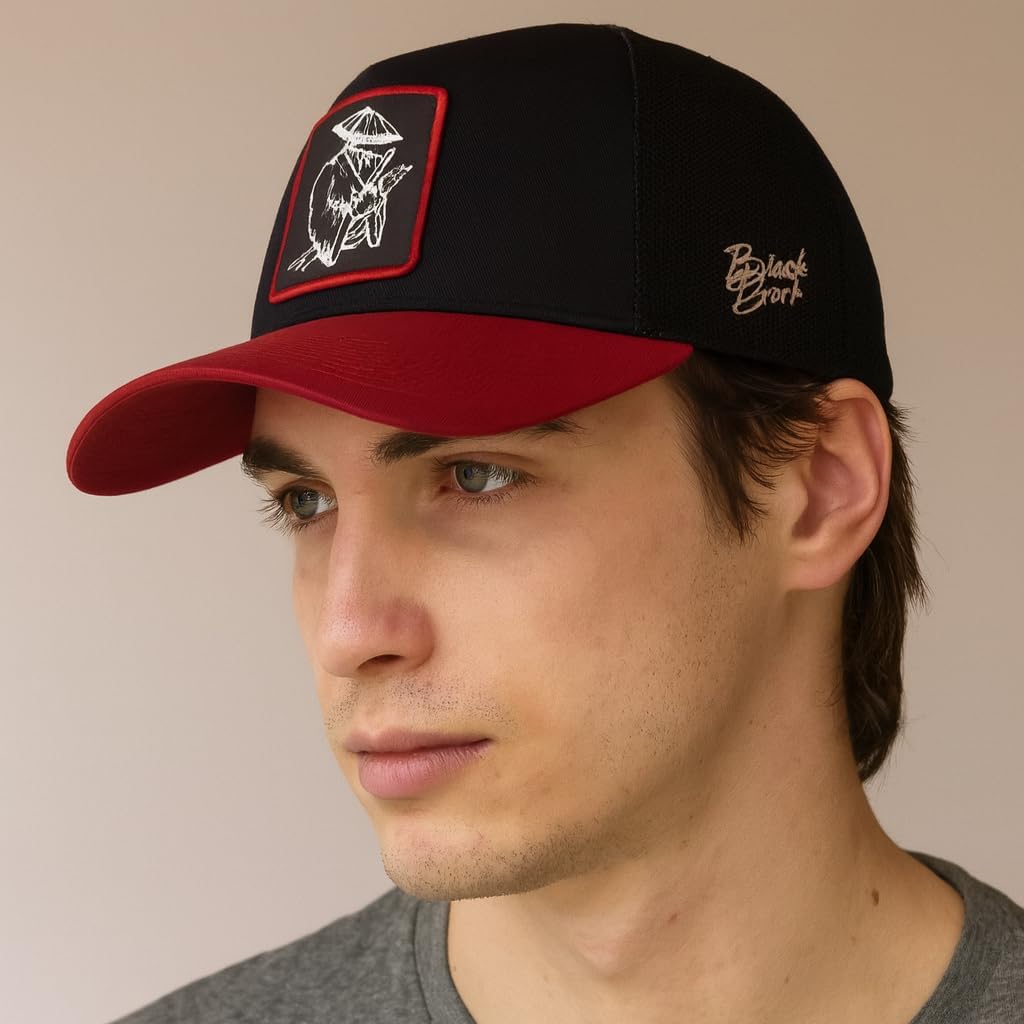 Trucker Hat Men, Trucker Hats Women, Snapback Hat Adjustable Mesh, Samurai Patch Trucker Hat, Samurai Design Hat, Replaceable Cap, Gorras para Hombres,Custom Hat Red,Yellow