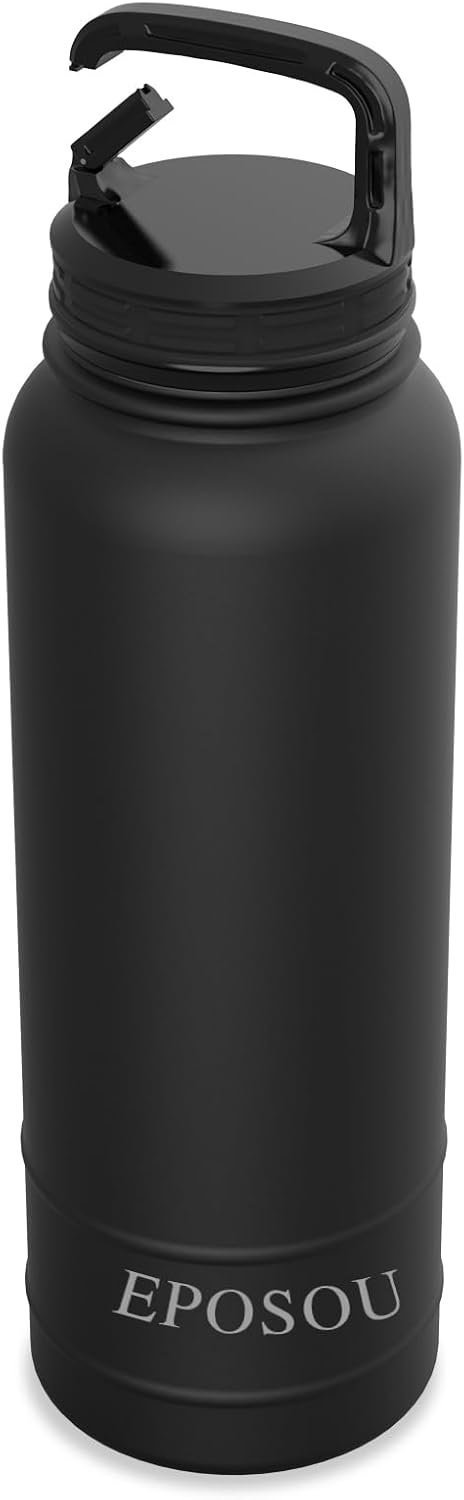 Sports bottle Stainless Steel,Lift-and-open handle design,Water Bottle with handle and Spout Lid - Leak Proof for Office/Gym, BPA-Free for Teens/Adults(Black 33oz)
