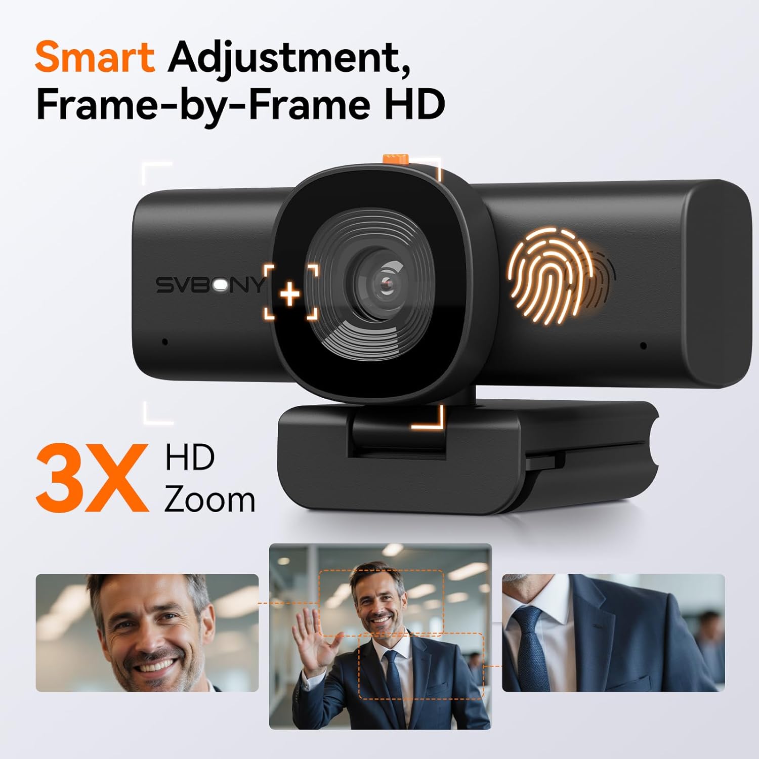 SVBONY SVN W1 2K/30fps Webcam for PC, HD Webcam for Laptop, 3D Digital Noise Reduction, Low-Light Adaptation, Dual AI-Noise Canceling Mics, for Zoom, Sessions, and Video Calls