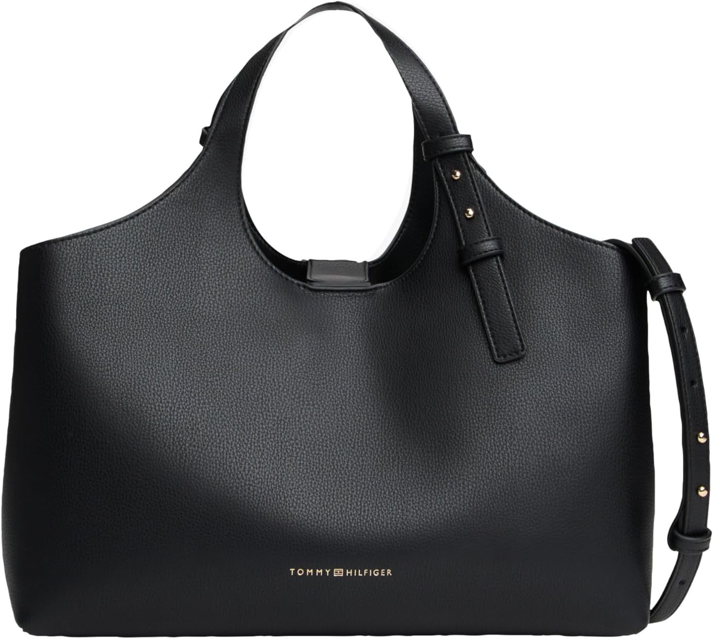 Explore elegance and functionality with the Tommy Hilfiger Logo Satchel Bag, designed for the woman on the go. This large tote bag is perfect for carrying daily essentials such as phones, keys, wallets, laptop, books, shoes, clothes and makeup, all while maintaining a sleek form. It is ideal for travel, work, school, and everyday use without looking bulky. Made from durable materials, it features an internal zip pocket, multi-pocket design for easy organization, and classy embellished hardware. It ensures your belongings are carried securely and stylishly. Its elegant design complements any outfit, enhancing your look for casual or formal settings. Perfect gift for special occasions like Valentine's Day, Mother's Day, birthdays, or anniversaries, the Tommy Hilfiger Logo Satchel Bag adds a touch of sophistication to your wardrobe, making it a versatile, stylish, and practical accessory ready for every adventure.