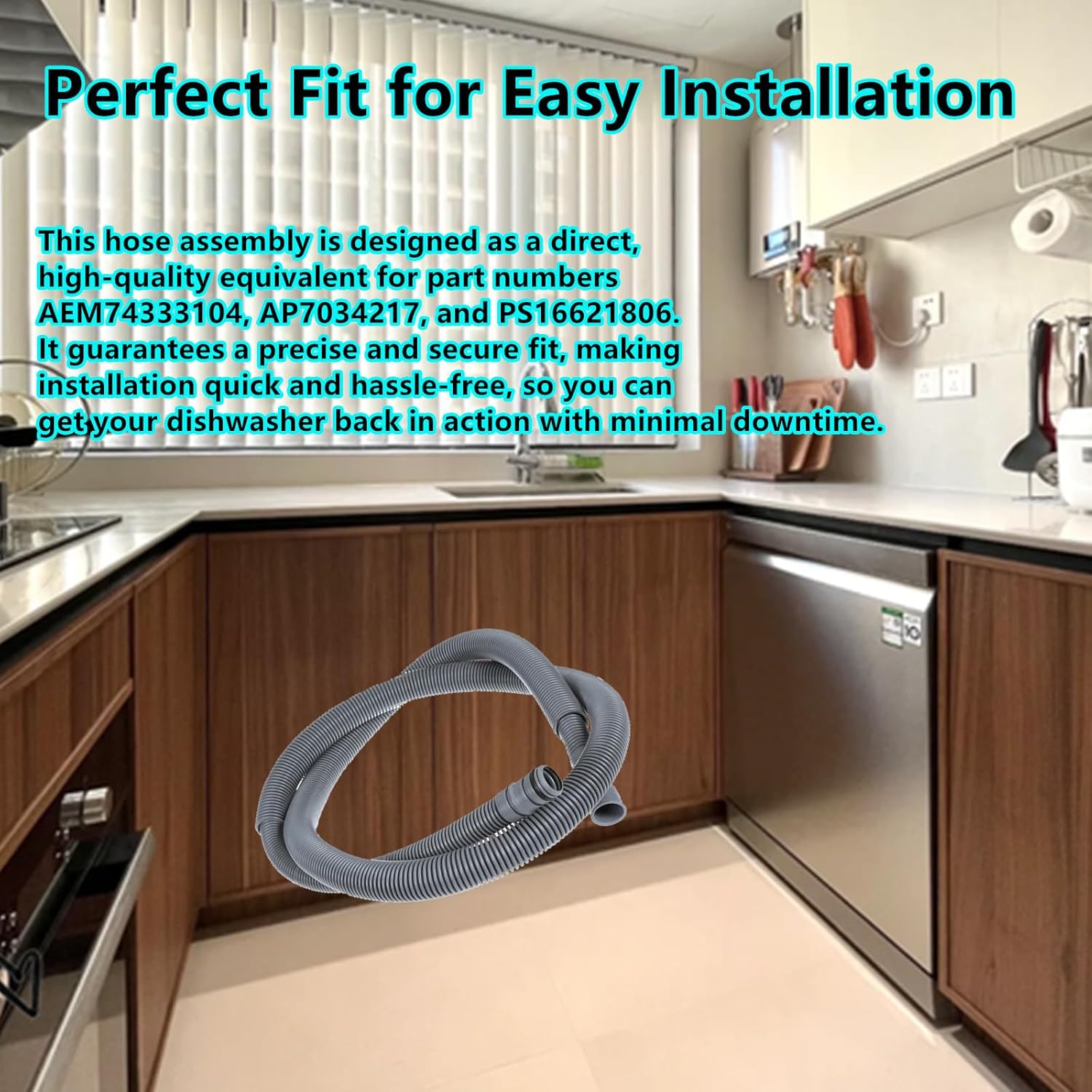 AEM74333104 Drain Hose Assembly Replacement for LG Kenmore Dishwasher Compatible with AP7034217 PS16621806 LDF5545ST LDT7797ST LDF5545SS LDFN3432T LDFN343LS LDFN4542S LDP6810BD LDT5665ST
