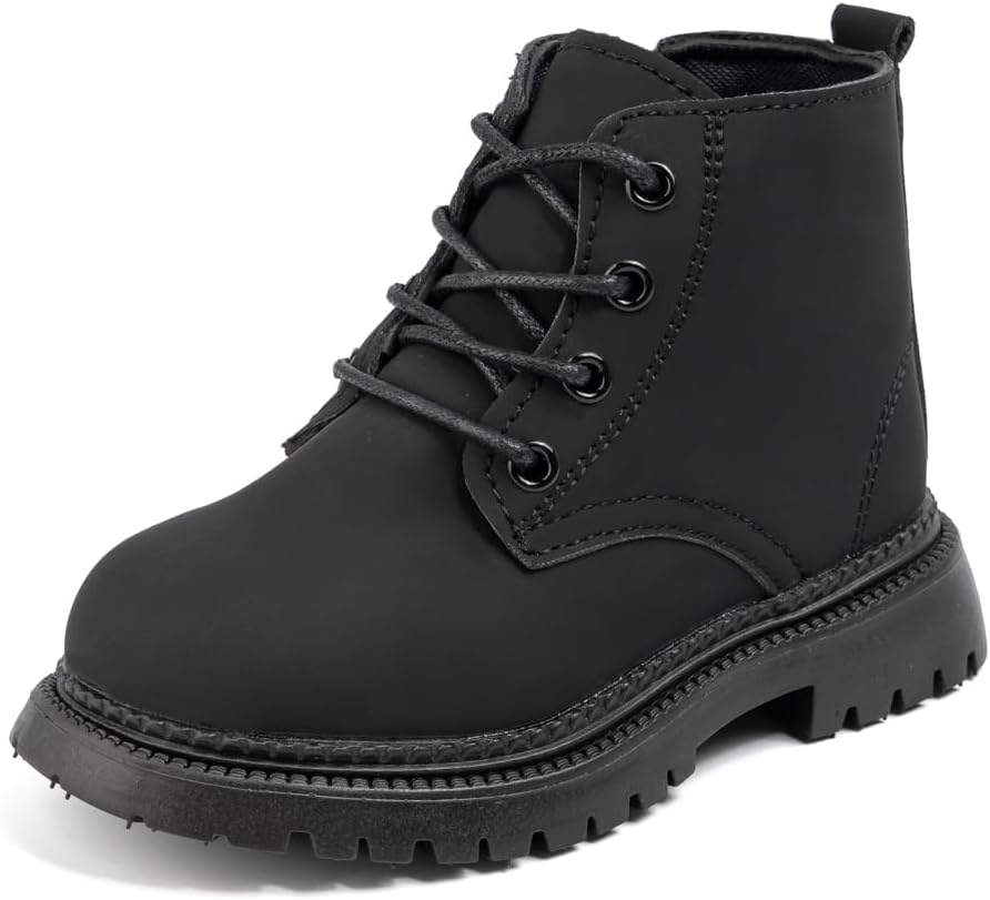 Casazoe Toddler Boys Girls Boots Little Kid Classic Work Boots Side Zipper Casual Walking Hiking Shoe High Top Lace Up Combat Ankle Shoes
