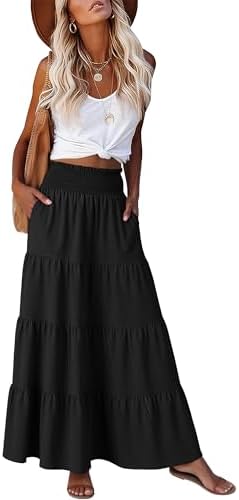 ANRABESS Womens Maxi Skirt Summer Boho Long Flowy Elastic High Waist A-Line Tiered Skirts 2026 Casual Beach Vacation Clothes
