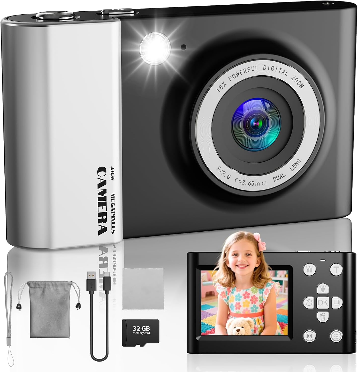 🎥 【4K Video Recording & Webcam Function】Shoot smooth 4K/30fps videos or use as a webcam for vlogging and online classes. Built-in microphone supports audio recording—perfect for young content creators