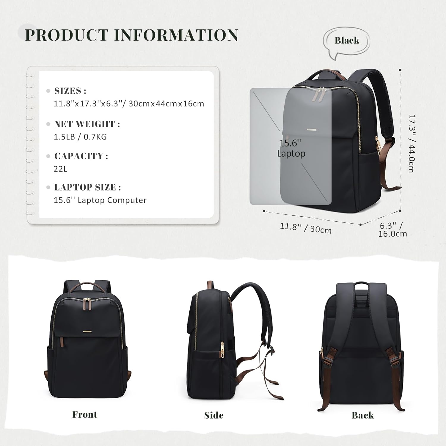 GOLF SUPAGS Laptop Backpack for Women Travel, Work & College Backpacks with Multiple Storage Pockets, Fits 15.6" Laptop, Airline Approved Carry-on Bag (Black)