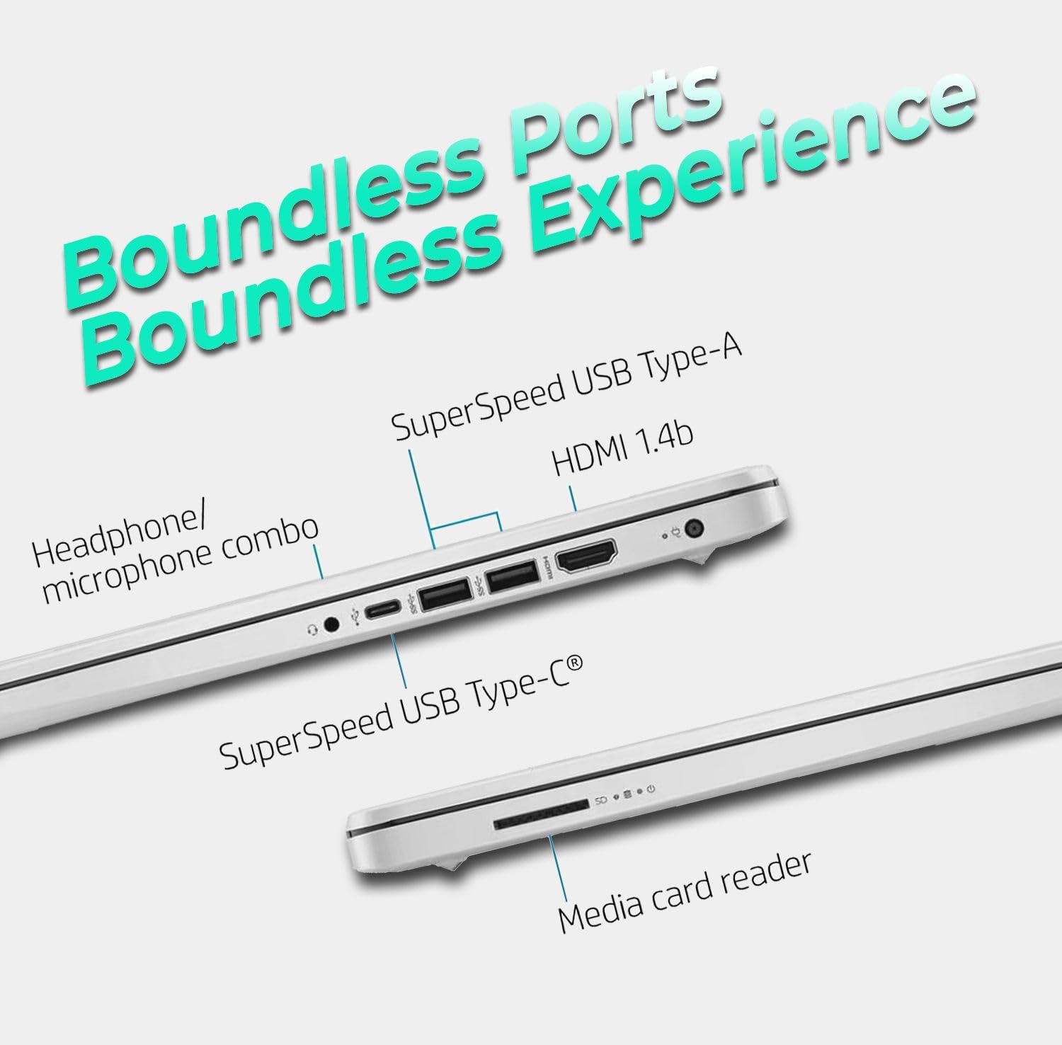 Processor: Intel Processor Graphics: Intel Graphics Operating system: Windows 11 Home 64-bit Memory: 8GB DDR4 Hard Drive: 1.3TB Storage (320GB SSD and 1TB OneDrive)br/> Optical Drive: No Display: 14-inch diagonal, LED screen, HD (1366 x 768), micro-edge, anti-glare, 250 nits, 62.5 sRGB, 79.0% screen to body ratio Connectivity: Wi-Fi 6 (2x2), Bluetooth 5.4 Audio: High Definition (HD) Audio Speakers: Stereo speakers Keyboard: Full-size keyboard with the key of easy access to Microsoft Copilot Touchpad: HP Multi-touch Imagepad Built-in HD Webcam: HP True Vision 720p HD camera with temporal noise reduction and integrated dual array digital microphones Ports: 1 x Multi-format SD media card reader 1 x Headphone / microphone combo 1 x USB Type-C 2 x USB Type-A 1 x HDMI 1.4b 1 x AC Smart pin Battery: Up to 11 hours (video playback) Up to 7 hours and 30 minutes (wireless streaming) Color: Natural Silver Dimensions L x W x H (inches): 12.76 x 8.86 x 0.71 Weight: 3.24 lb