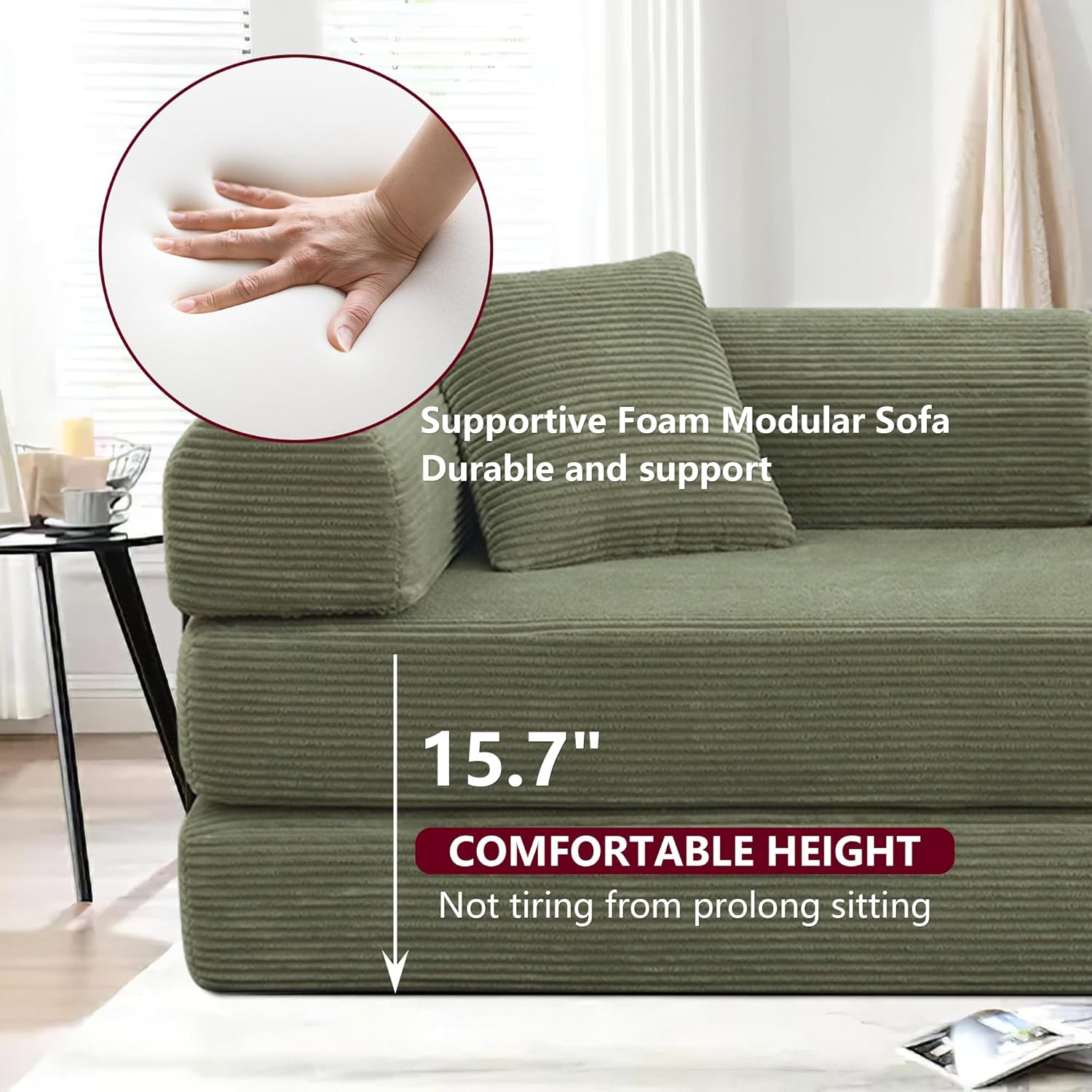 ✔ [Filled in All Foam & Upholstered Corduroy Cover]: Compared to spring sofa, our sofa bed, whole foam maded, covered by upholstered corduroy supports long lifespan. You do not have any problem for the collapse and shape-transformation.