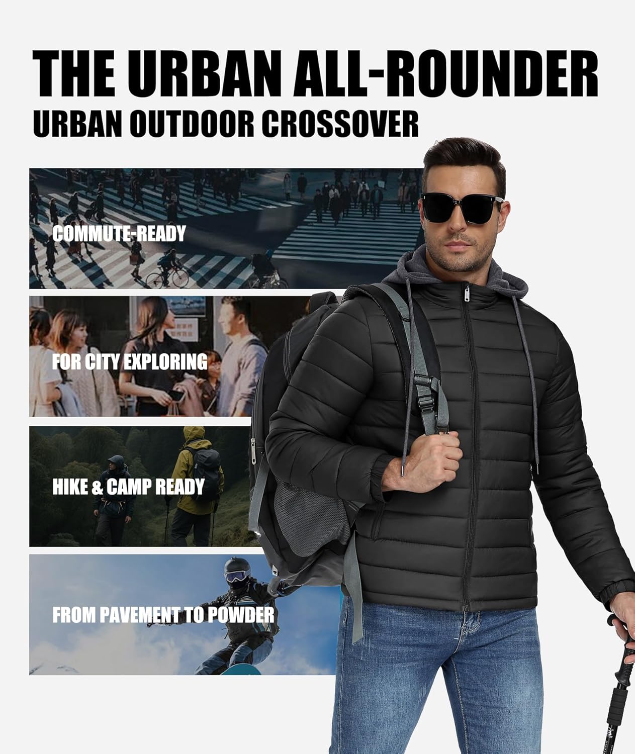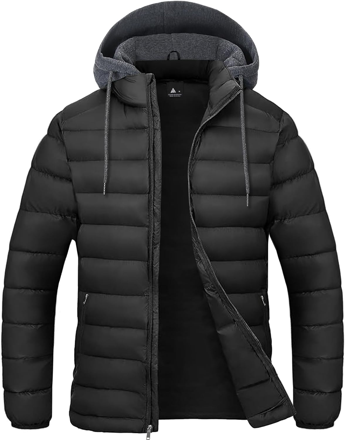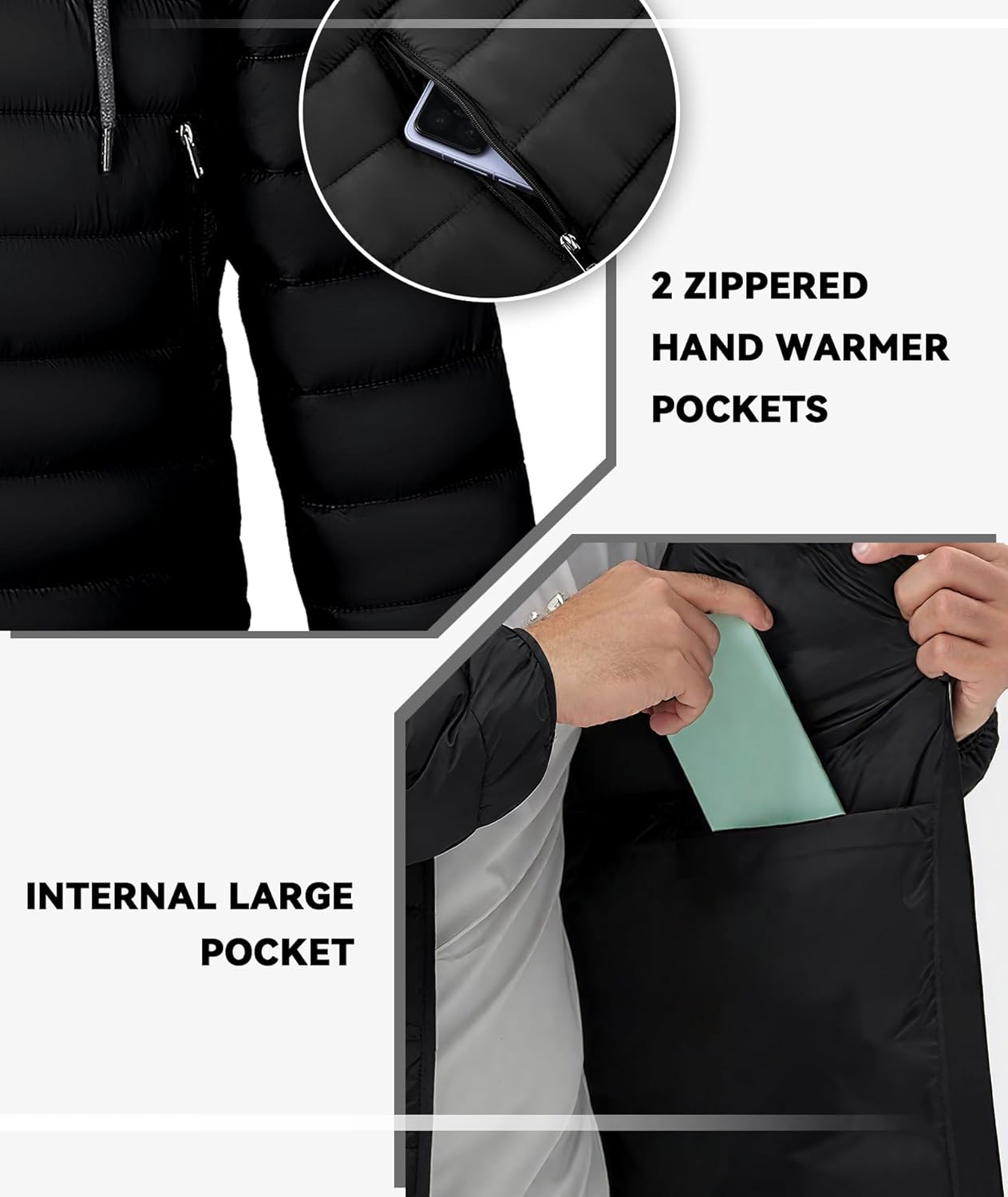 SWISSWELL Mens Lightweight Puffer Jacket with Hood Quilted Insulated Water-Resistant Coat Warm Winter Zip Up Hooded Jacket