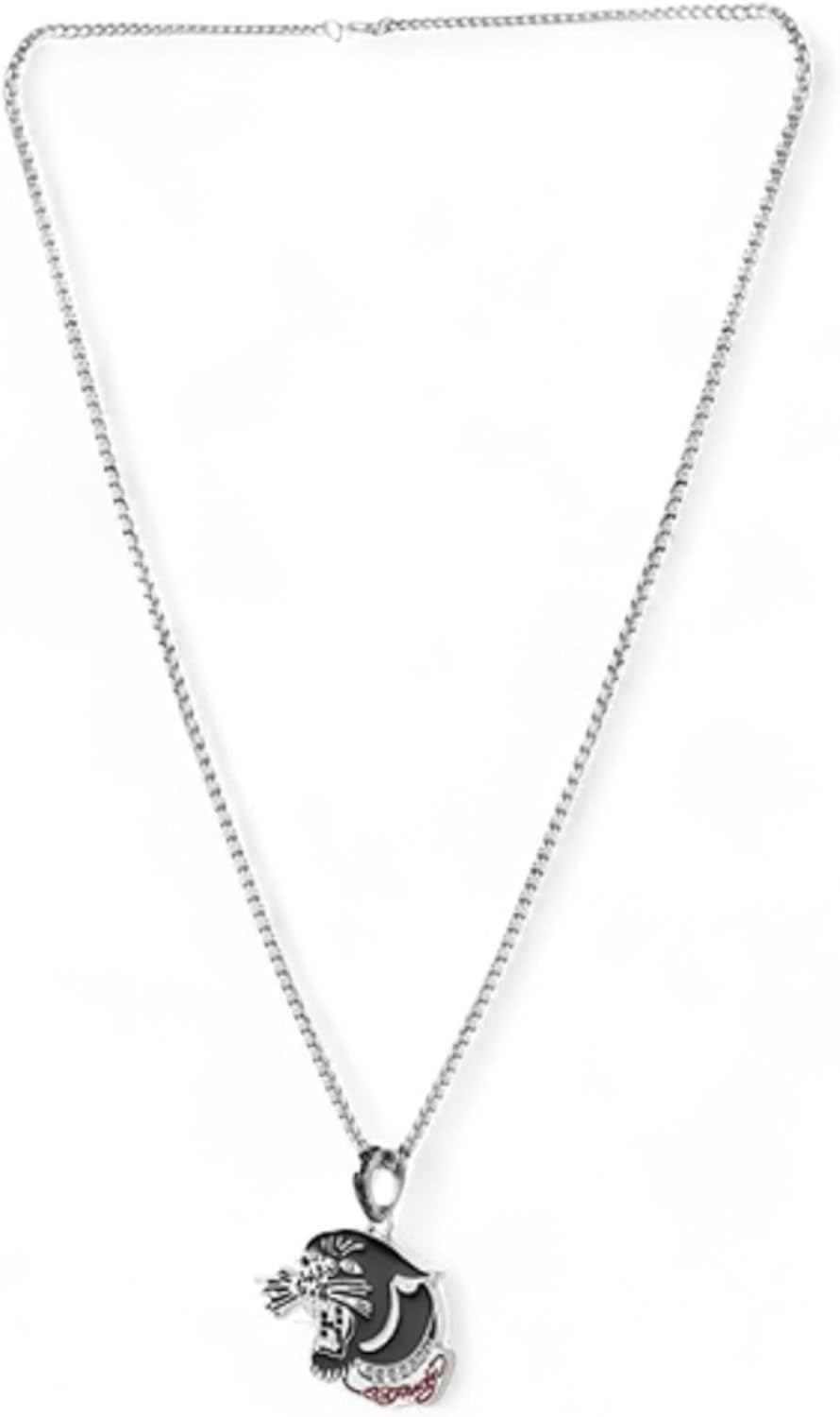 This watch gift set is a bold celebration of artistry and style. The striking timepiece features a durable black textured silicone strap that perfectly balances comfort with a modern flair. The tonneau brushed silver-tone metal case adds an elegant touch beautifully framing the brushed silver-tone dial. With a reliable buckle closure this watch is ideal for everyday wear. The gift set further includes a stunning 26-inch box chain adorned with a jaguar pendant, embellished with 2 mm crystal stones and 1 mm Siam stones exuding fierce elegance. Completing the set is a 9 inch ID tag curb chain bracelet featuring the brand name and secured with a lobster closure making this ensemble a powerful expression of individuality and the brand's sigature iconic flair.