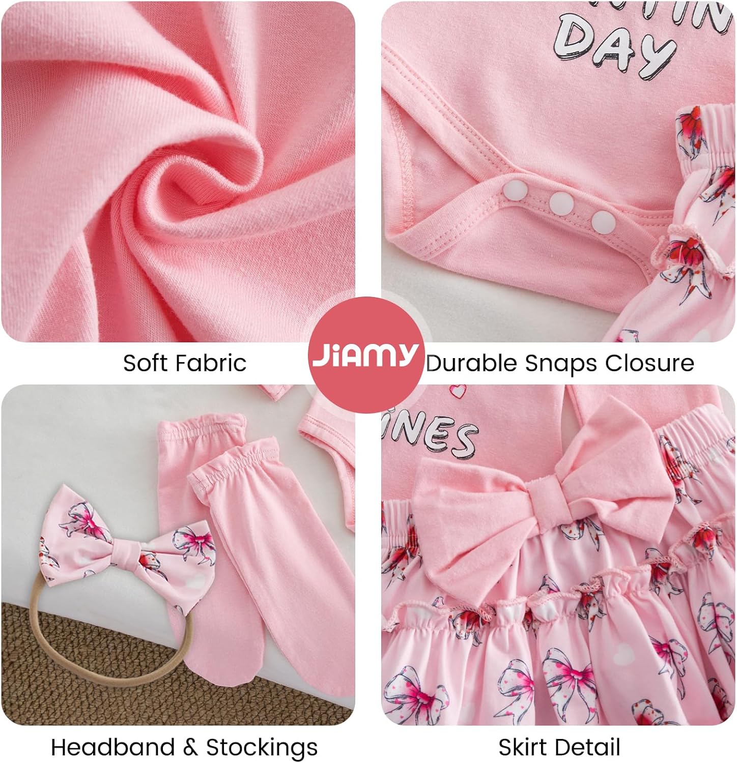 JiAmy Baby Girls My 1st Valentine's Day Outfit Newborn 4 Piece Romper Skirt Headband Legging Socks Set 0-18M