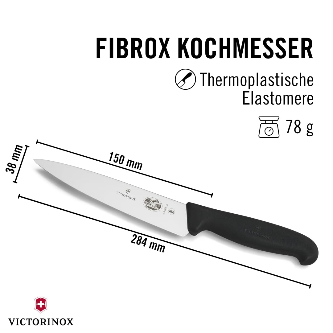 Victorinox Swiss Army 5.2003.15-X8 Fibrox Straight Chef's Knife Black 6 in