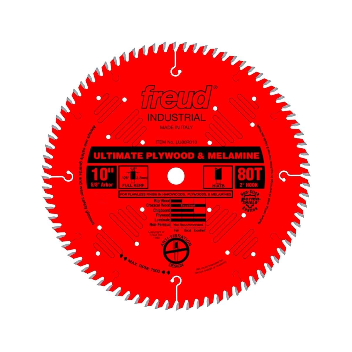 Freud Ultimate Plywood & Melamine Blade - Ideal for Beginners, DIYers, and Professionals - 10" Diameter, 80 Teeth, 5/8" Arbor, Flawless Finish - LU80R010