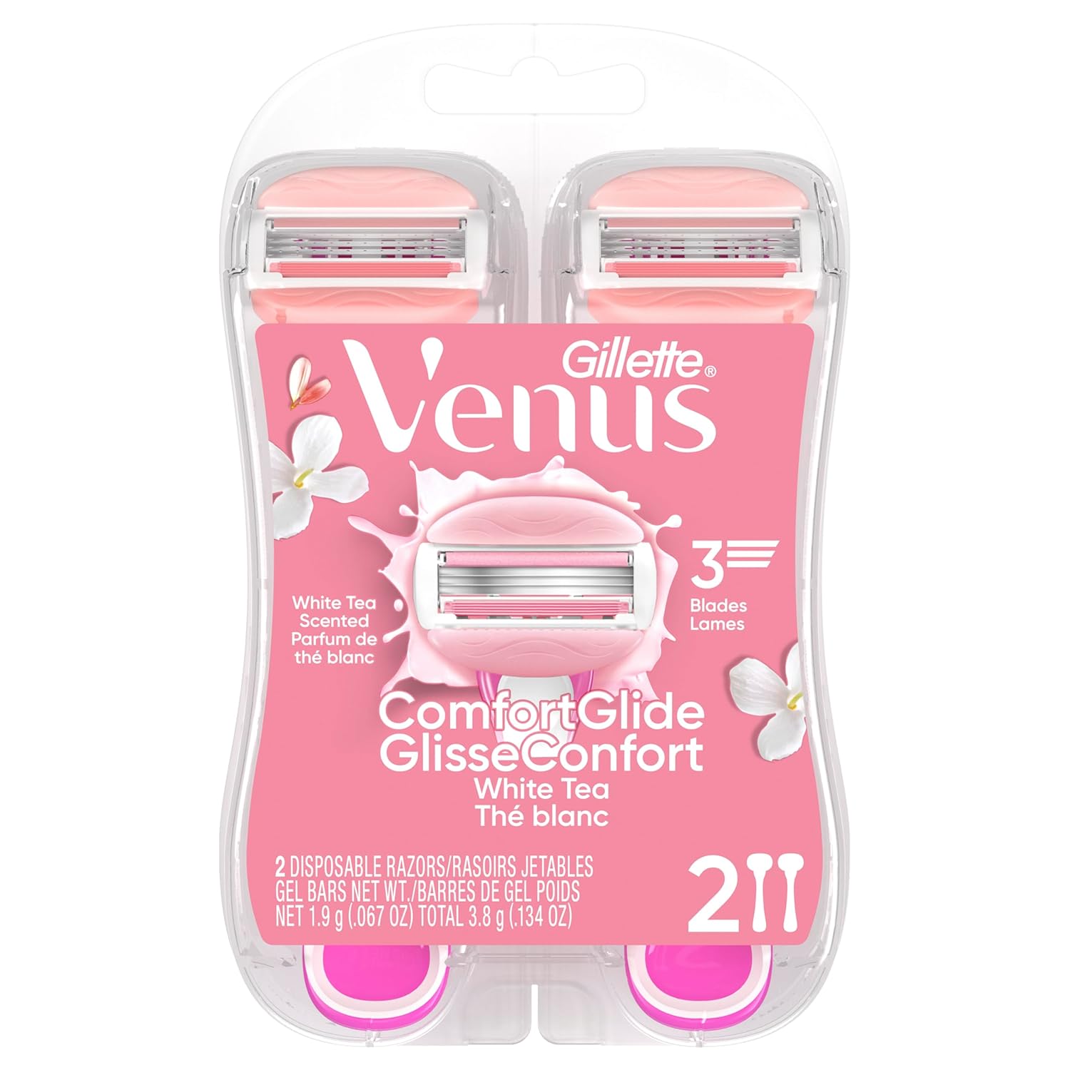 Gillette Venus ComfortGlide Disposable Razors for Women, 2 Count, White Tea Scented Moisture Bars for a Smooth Shave
