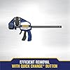 With 600 lbs. of sustained clamping force, the IRWINQUICK-GRIPOne-Handed Bar Clamp, Heavy-Duty, is one of the top powerful one-handed bar clamps available. With an I-beam bar that reduces bending and flexing even under extreme pressure, it's ideal for heavy-duty applications such as installation, demolition, and rough glue-up. Dual swivel jaws feature non-marring full-face pads to provide even distribution of clamping force on the workpiece. The pads can be easily removed to activate the swivel jaws and maintain full contact even when conforming to irregular shapes. A Quick-Change() button converts this clamp easily into a spreader while the adjustable foot provides added support so the clamp can sit upright on a table or work surface, making it perfect for gluing panels or cabinetry. The unique pistol grip design and Quick-Release() trigger provide simple, one-handed operation. The IRWIN QUICK-GRIP One-Handed Bar Clamp delivers superior power, versatility, and stability.