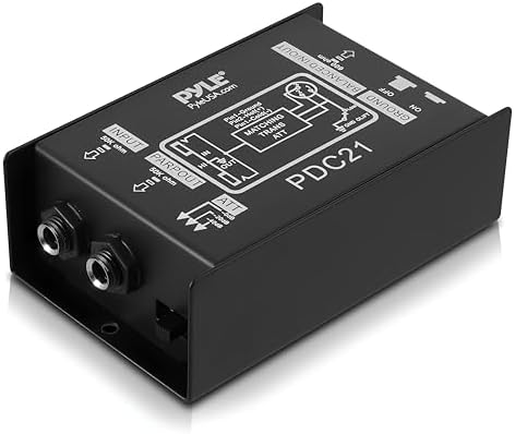Pyle Premium Direct Injection Audio Box - 2.36" x 4.09" Unidad DI Pasiva Eliminador de Ruido con Atenuador de Entrada para Conectar Guitarra y Bajo, Conector Transformador de Impedancia 1/4'' a XLR Balanceado y No Balanceado