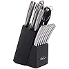 BLOCO DE MADERA INCLUIDO: El bloque de madera natural almacena y mantiene un registro de toda tu cubertería en un solo lugar en tu encimera; Material: Acero inoxidable; Dimensiones (L x W x H): 8.5 x 14.5 x 6 pulgadas