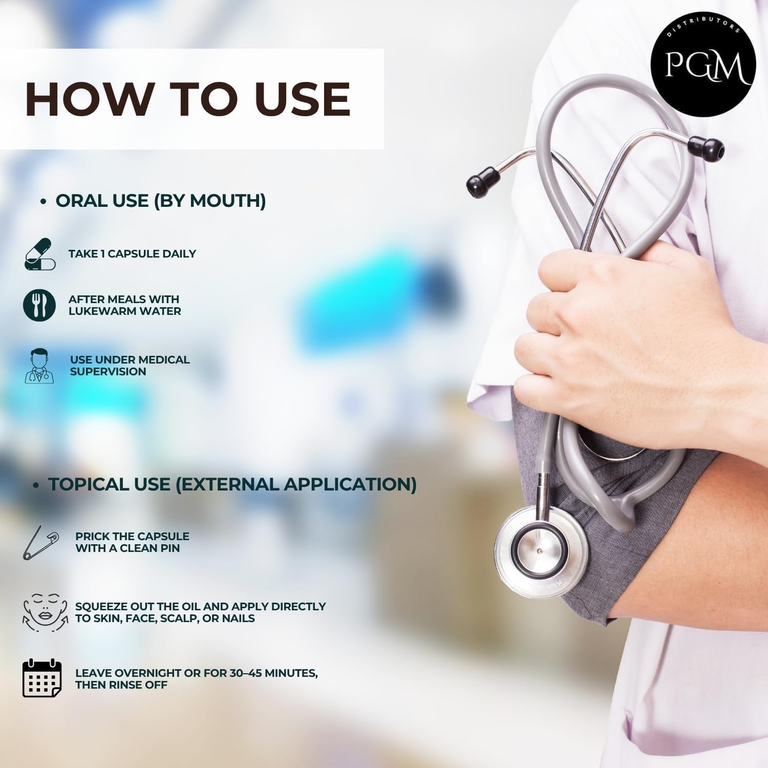 10 BANDEJAS DE Cápsulas Blandas de Vitamina E Para Cara, Cabello, Acné, Uñas, Salud General Piel Radiante 400mg 5x1 bandeja=50 Cápsulas La Vitamina E es un término genérico; Evion de Merck contiene Vitamina E; para tocoferoles y tocotrienos. La Vitamina E es una familia de α-, β-, γ-, y δ-tocoferoles y los correspondientes cuatro tocotrienos. La Vitamina E es un antioxidante liposoluble que detiene la producción de especies reactivas de oxígeno formadas cuando la grasa se oxida. De estos, el α-tocoferol (también escrito como alfa-tocoferol) ha sido el más estudiado ya que tiene la mayor biodisponibilidad. Cápsulas Evion para el Uso en la Cara: Usa el gel de una cápsula Evion en tu cara para deshacerte rápidamente de las cicatrices. Lo importante es usarlo con moderación. El suero es realmente pegajoso y puede hacer que tu cara se vea como una fábrica de aceite aunque no daña. Usa el gel Evion todas las noches en toda tu cara diariamente. Reduce las cicatrices y tensa la piel. También puedes mezclar el suero de las cápsulas con tus cremas faciales diarias o nocturnas si no quieres usar las cápsulas directamente en la cara. Cápsulas Evion para Uñas; Toma una gota diminuta de suero de cápsula Evion y úsalo para masajear tus cutículas. Esto curará toda la piel seca y escamosa. El área alrededor de tus uñas se volverá suave. Cápsulas Evion para Acné: Estas cápsulas también ayudan a deshacerse del acné. Aplica un poco de suero en el acné regularmente. Lo verás desaparecer en poco tiempo. Este probablemente sea la forma más rápida y efectiva de deshacerse de los granos. Cápsulas Evion para el Cabello: Toma la cantidad deseada de suero y aplícalo en tu cabello desde las raíces hasta las puntas. Masajee un poco en el cuero cabelludo también. Puede necesitar 3-4 cápsulas dependiendo de la longitud de tu cabello. Sentirás grasitud pero solo necesitas mantenerlo durante 30 minutos. Lava tu cabello y la sensación pegajosa desaparecerá. Te sorprenderá lo saludable que se vuelve tu cabello con el uso regular. Cápsulas Evion para Salud General: Toma las cápsulas Evion como suplementos. Toma