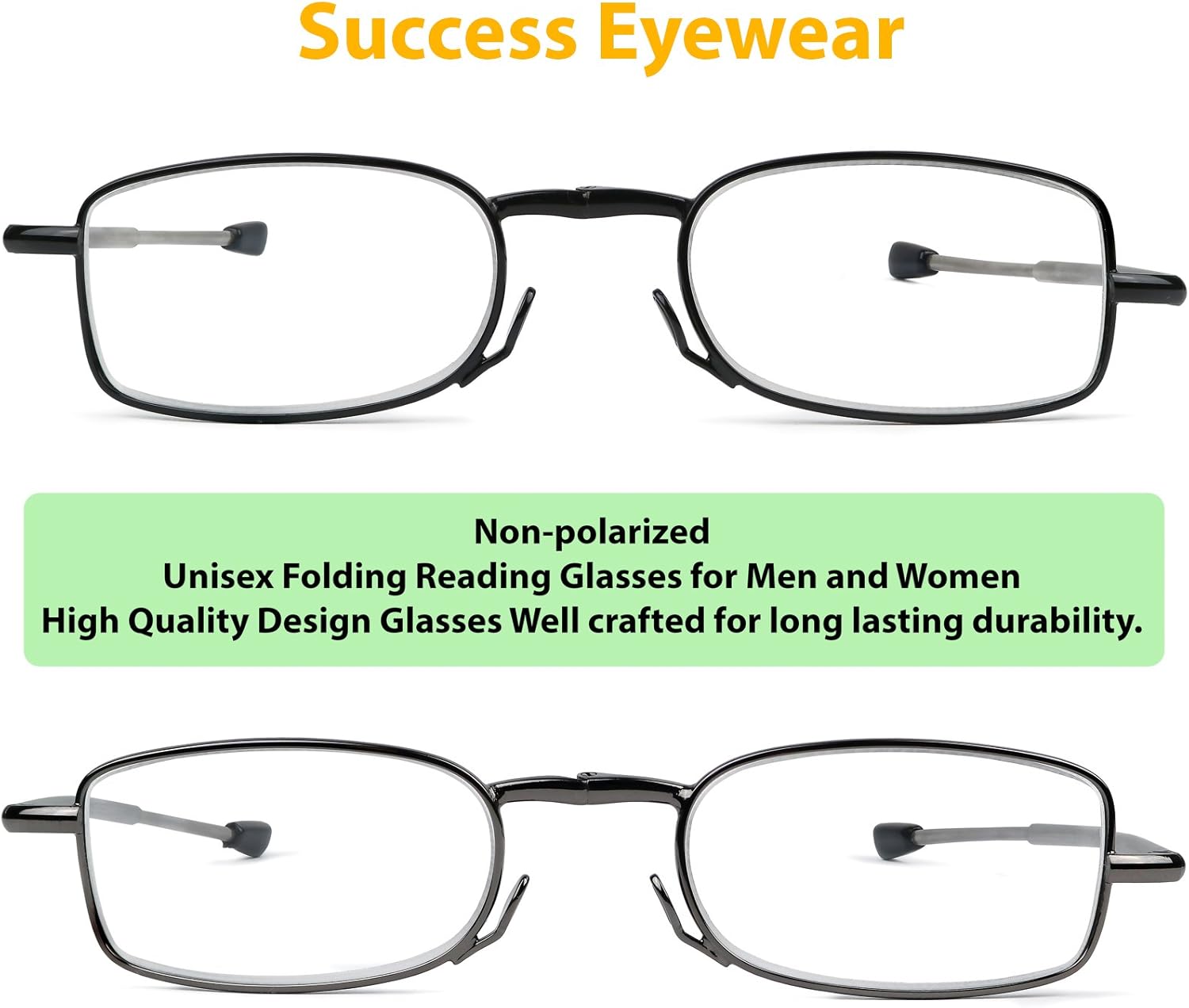 Gafas de Lectura Éxito Eyewear 2 Pares Negras y Metal Gris Compactas Plegables Unisex con Estuche Incluido