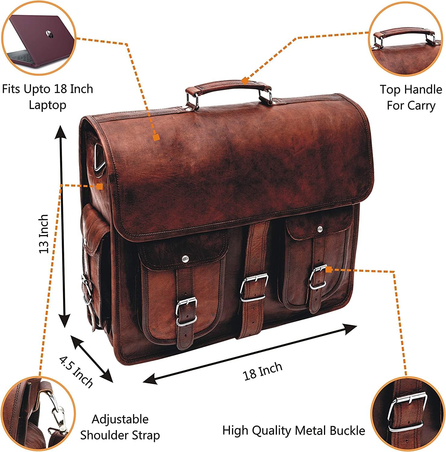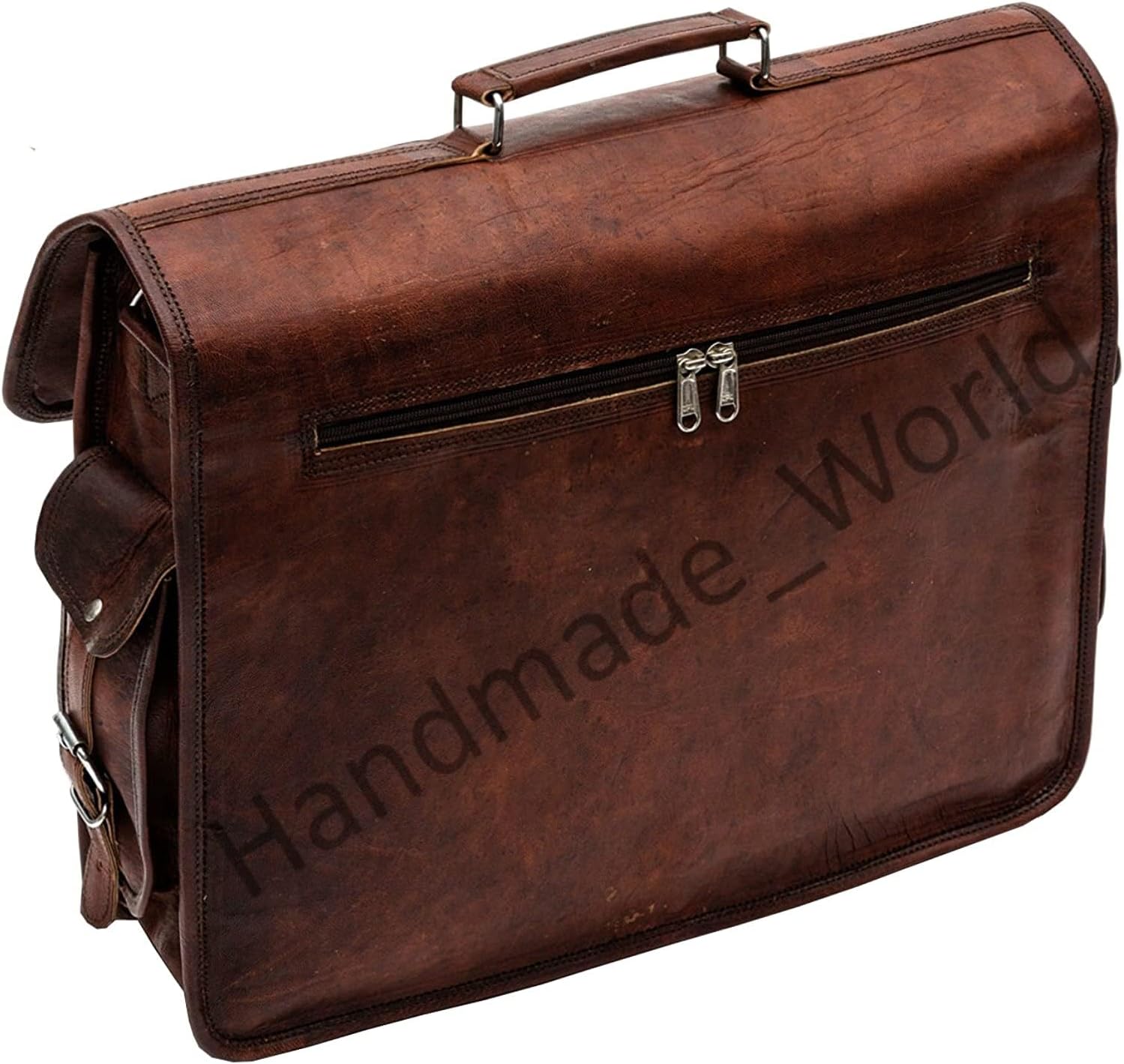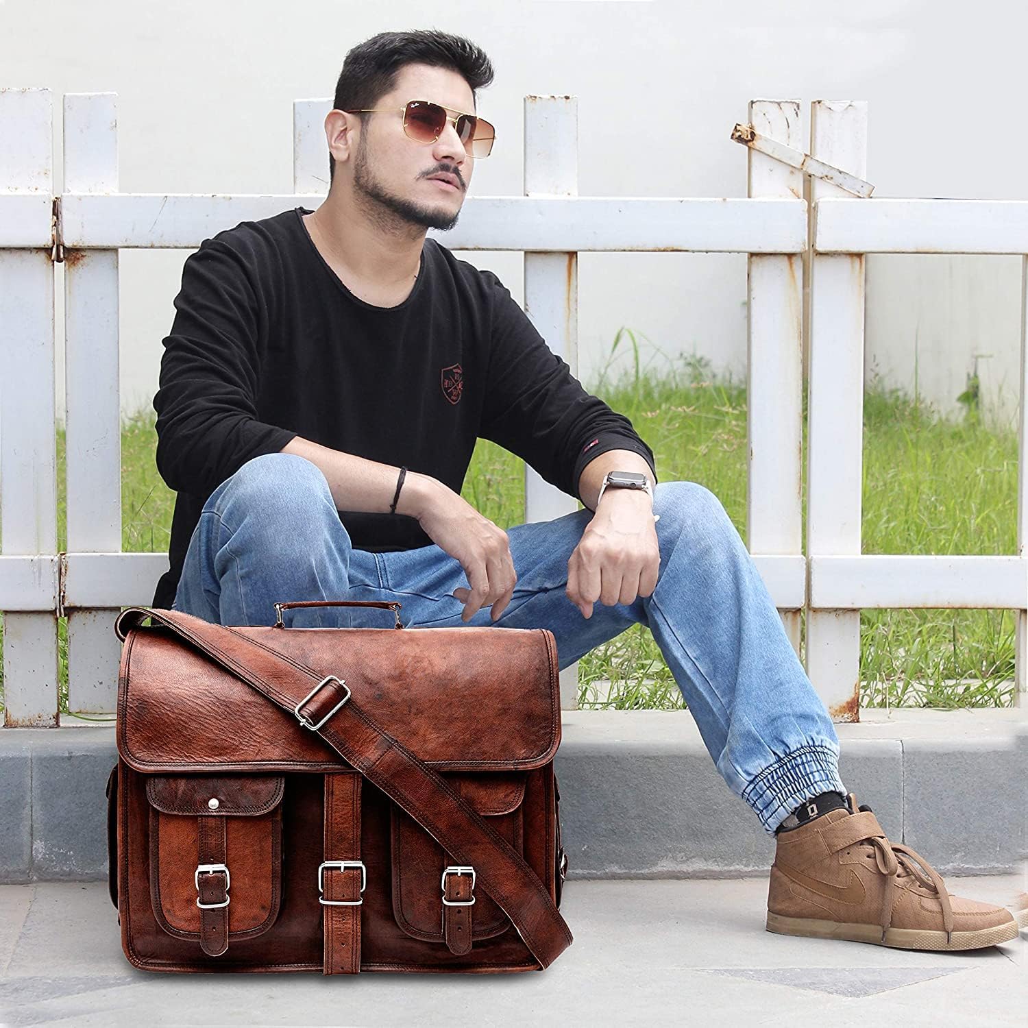 Bolsa de mensajero de cuero marrón, maletín de cuero, bolso cruzado al hombro grande para portátil