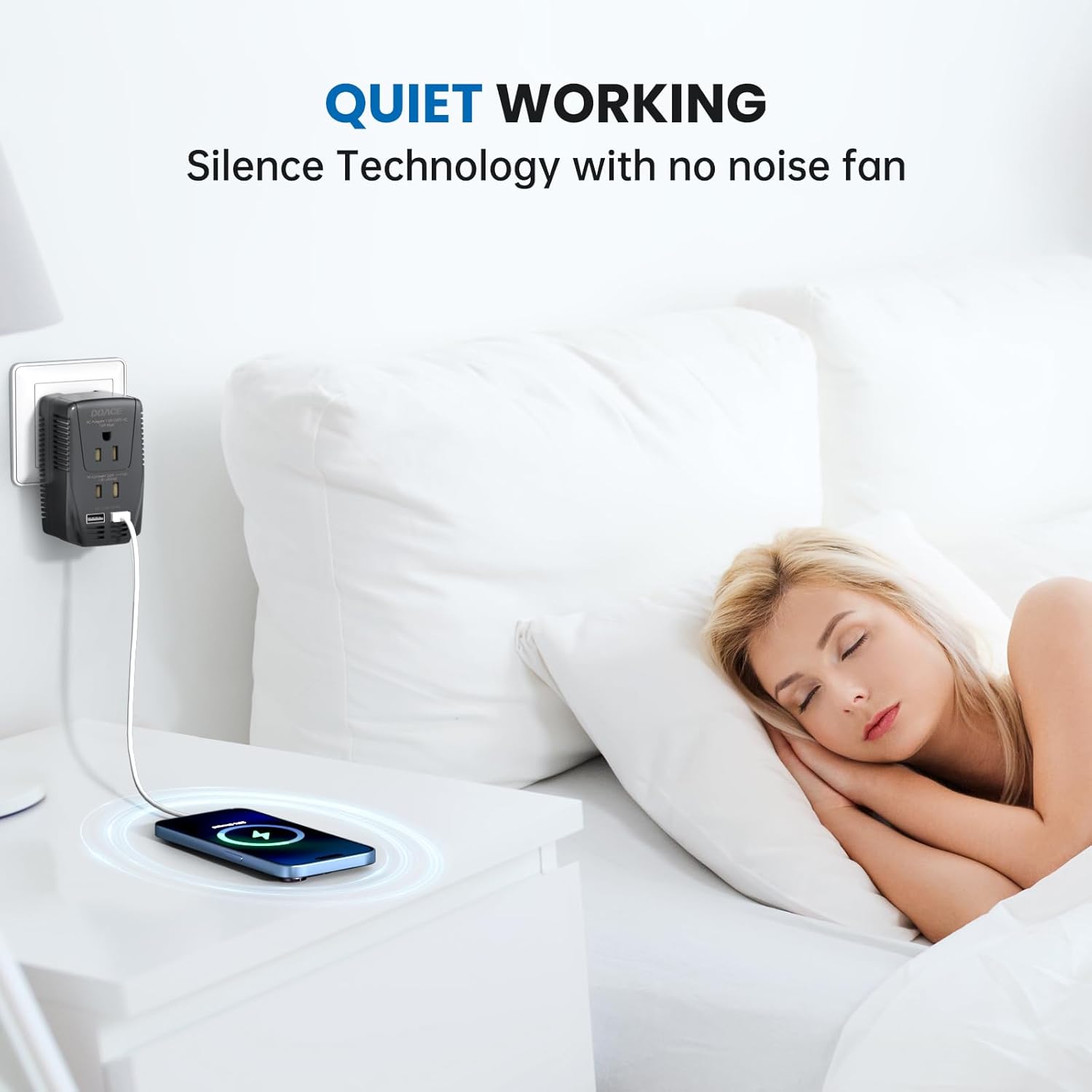 [Convertidor Mejorado de 2000W para Dispositivos de 110V] El enchufe convertidor AC de 2 clavijas puede reducir la tensión extranjera de 220-240V a 110V, diseñado para dispositivos estándar EE.UU. cuando los estadounidenses viajan a países de 220-240V, como herramientas de peinado de cabello Conair/babylisspro/Revlon (plancha, alisador, curler) y secadores de pelo (excepto Dyson), planchas de vapor, hervidores eléctricos, etc.