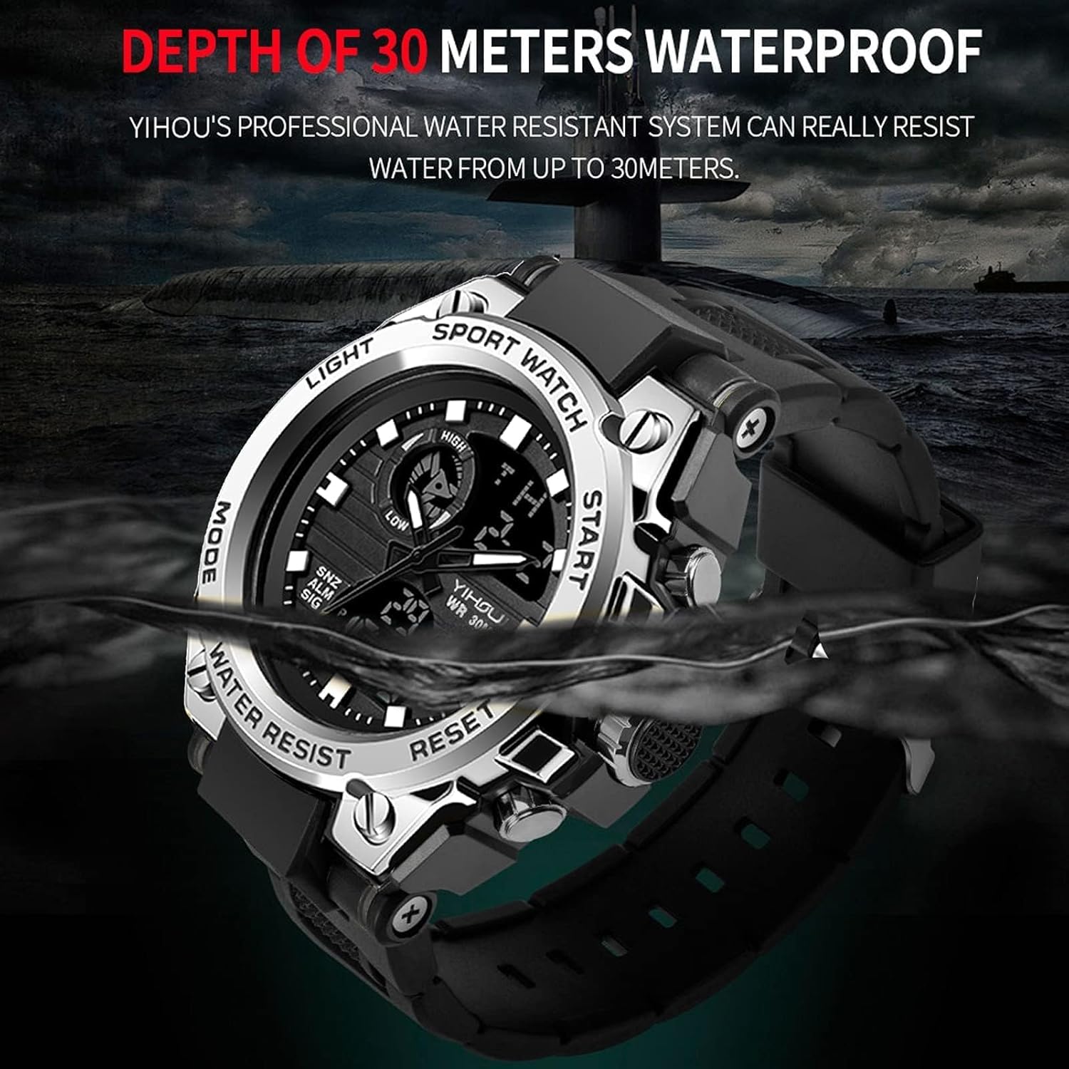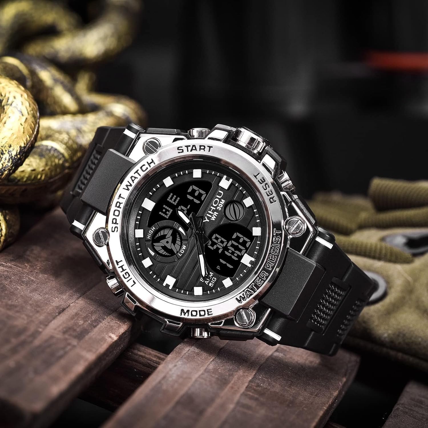 Reloj militar para hombre Yihou, reloj electrónico de deportes al aire libre, reloj táctico de ejército, reloj digital analógico LED resistente al agua