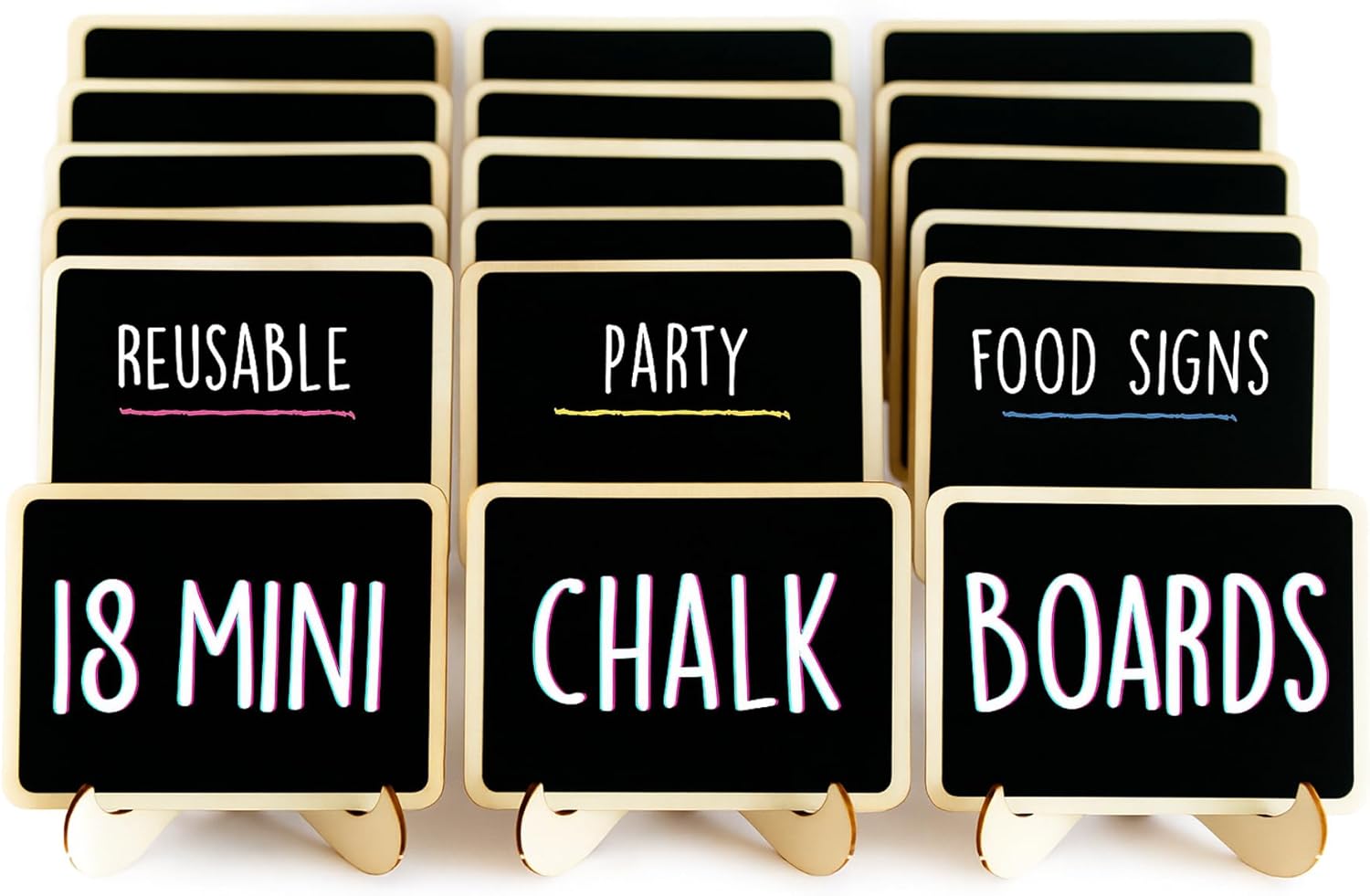 Pizarras de Tiza Mini para Comida, 18 Pizarras Pequeñas Incluyendo 3 Brocha de Tiza Blanca, Etiquetas de Mesa para Fiestas de Comida, Suministros de Mesa de Queso y Caramelos para Buffet