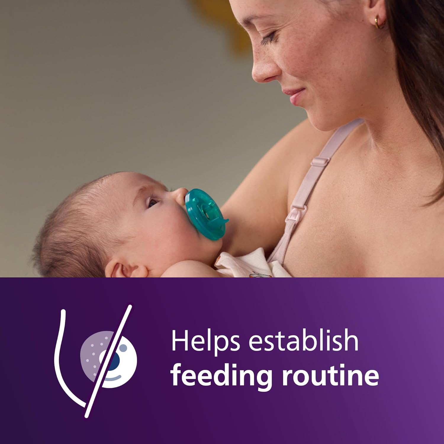 Ayuda a establecer rutinas de alimentación​: Soothie entrena suavemente los músculos que los bebés necesitan para beber, lo que ayuda a cambiar el enganche y la ingesta de leche; puedes amamantar con confianza y ofrecer una chupeta