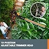 SIEMPRE EL ÁNGULO DE TRABAJO CORRECTO: Con la cabeza ajustable en 10 posiciones, este cortacesped asegura un rendimiento óptimo, ya sea cortando por encima, encima o lateralmente a lo largo del seto. Ajuste sencillo de un solo paso con solo pulsar un botón.