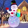Divertidas Decoraciones de Navidad para Jardín: Impresionantemente alto de 5 pies cuando inflado. Un lindo muñeco de nieve inflable de Navidad que sostiene regalos y dice hola hará que tus niños y invitados griten de alegría