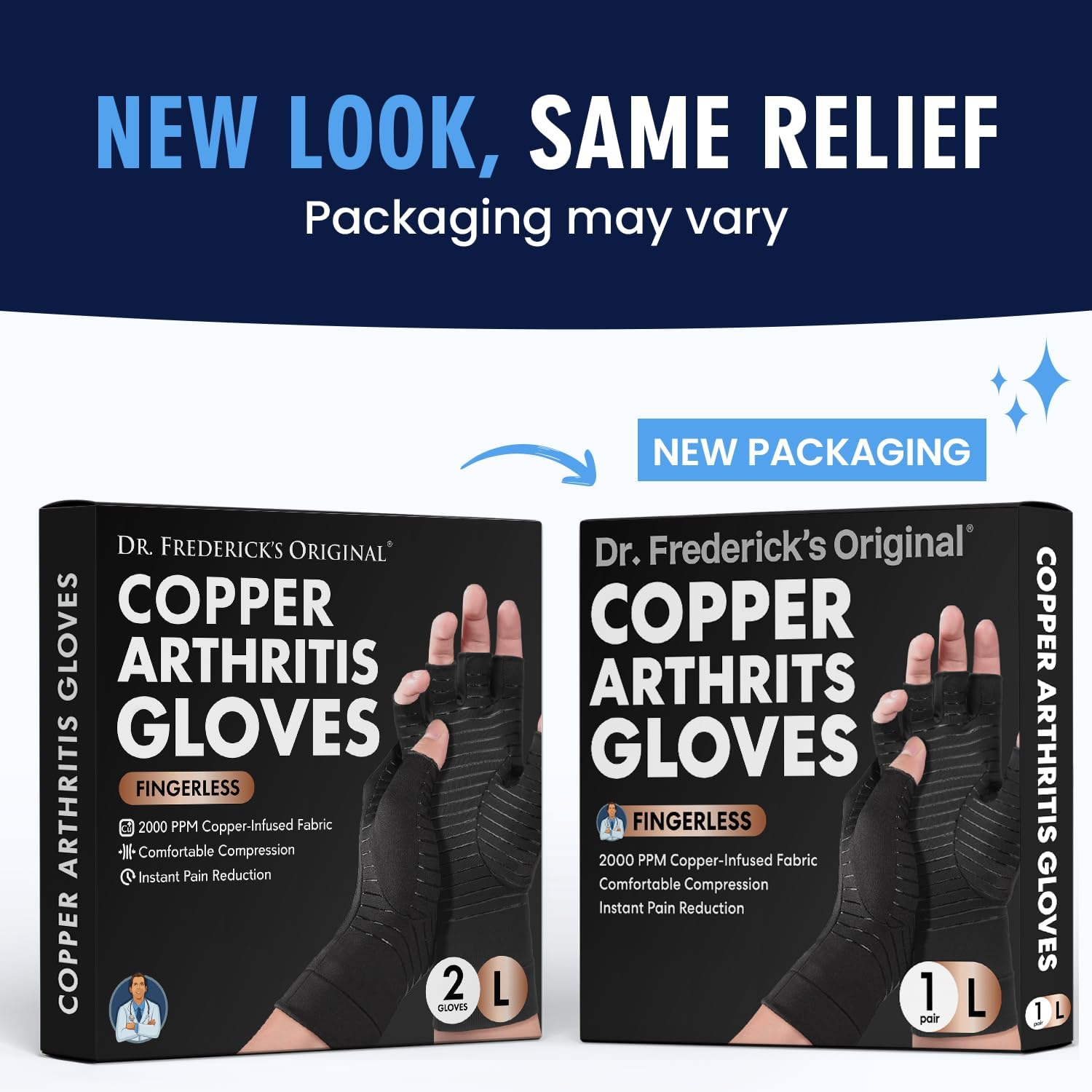 Cómoda compresión que proporciona alivio: ¡no dejes que el dolor arruine tu día! Vuelva a las actividades que le encantan con los guantes cómodos de cobre originales del Dr. Frederick. Estos guantes sin dedos son cómodos y tratan el dolor y la inflamación de las manos debido a la artritis, el síndrome de Reynaud, el túnel carpiano, la mala circulación y más.