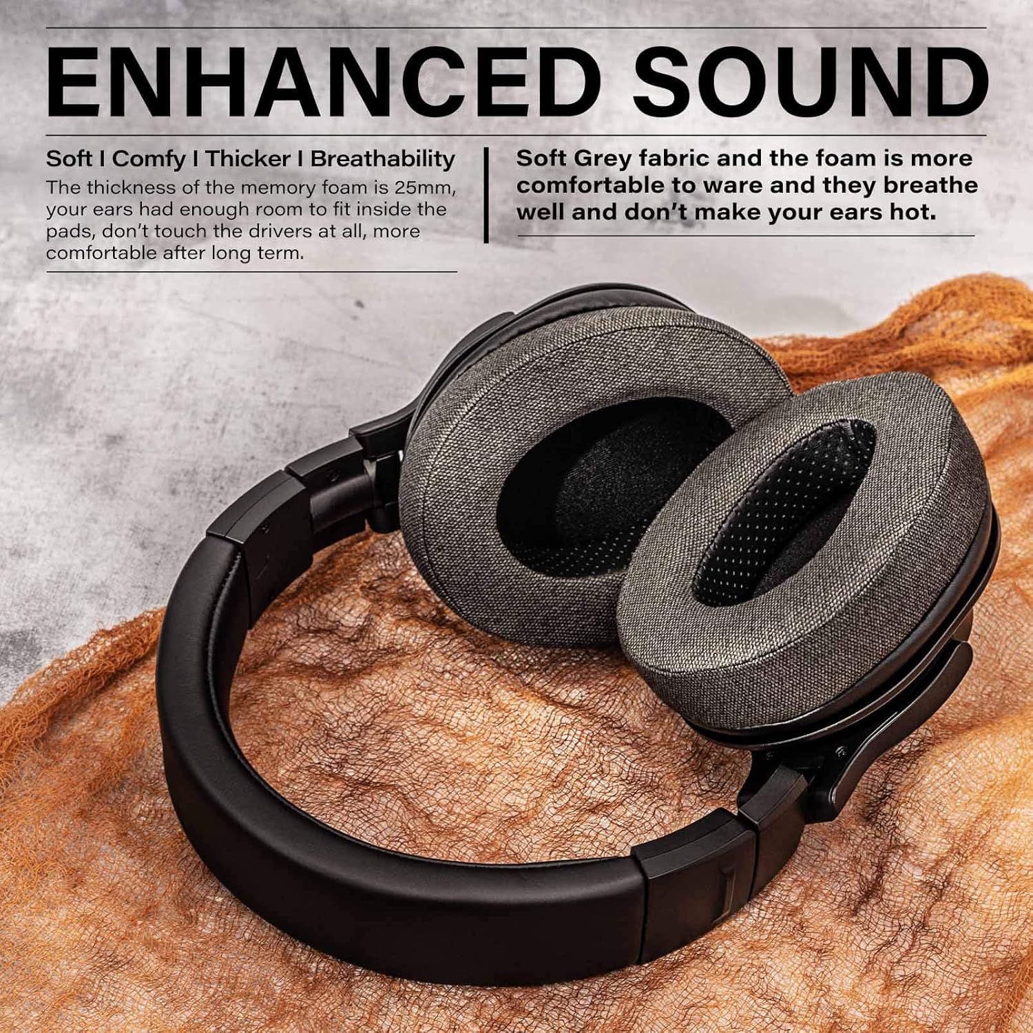 SUAVE Y COMODO: Tela de lino suave y espuma de memoria suave pero duradera. Las almohadillas son suaves y cómodas y se comprimen sin que los drivers de sonido toquen tus oídos en absoluto. Comodidad en los oídos hasta el punto de olvidar que los auriculares están puestos.