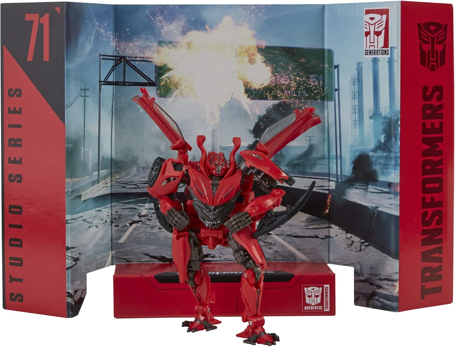 La Serie de Estudio siempre ha permitido a los fanáticos ir más allá de la gran pantalla y construir la colección definitiva de Transformers inspirada en escenas icónicas del universo cinematográfico de Transformers. Ahora, la línea de Serie de Estudio se está expandiendo para incluir los momentos y personajes épicos de la clásica The Transformers: The Movie, ¡ofreciendo a los fanáticos toda una nueva serie de figuras inspiradas en la pantalla para coleccionar! (Cada uno vendido por separado. Sujeto a disponibilidad.) Esta figura Autobot Dino inspirada en Transformers: Dark of the Moon de la Serie de Estudio 71 Clase Deluxe se convierte de robot a modo coche deportivo en 27 pasos. Retire el fondo para mostrar al Autobot Dino en la escena de la Carrera a Alta Velocidad. En la escena de la Carrera a Alta Velocidad de Transformers: Dark of the Moon, los Dreads persiguen a los Autobots en la autopista en un esfuerzo por tomar a Sentinel Prime. Autobot Dino engancha sus cuchillas en Hatchet, girándolo hacia el fuego de los blasters Autobot y lanzándolo al tráfico contrario. ¡Posea la figura con los accesorios de cuchillas incluidos e imagine recrear este clásico momento de la película!